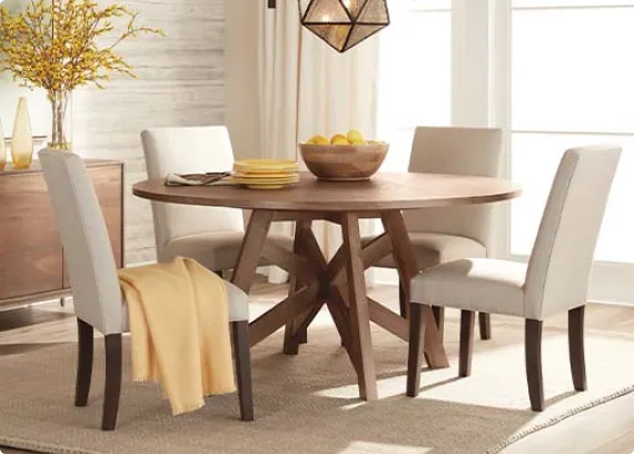 Can't decide on color? Choose a dining table with a two-toned finish. The base and top will coordinate instead of match.
