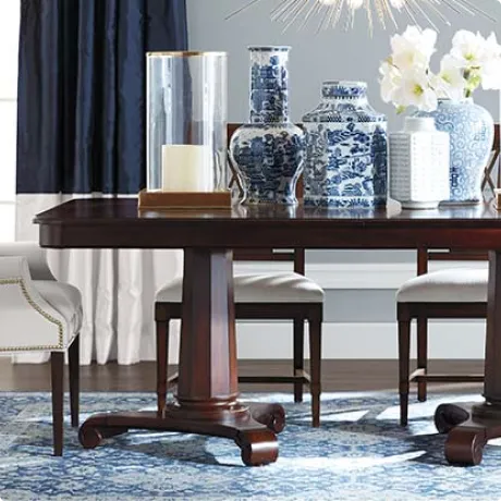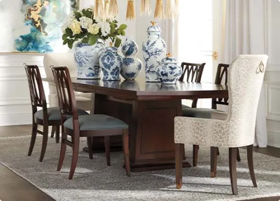 Will you set a modern farmhouse table? An intimate breakfast nook? A formal dining space for large families? Visit our Custom Dining Table page to choose every element of your table, and the master artisans of Ethan Allen will craft it in our own North American workshops.