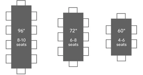 If you need more surface space for extra courses, select a larger table or opt for a coordinating buffet depending on what fitsbest in your room.