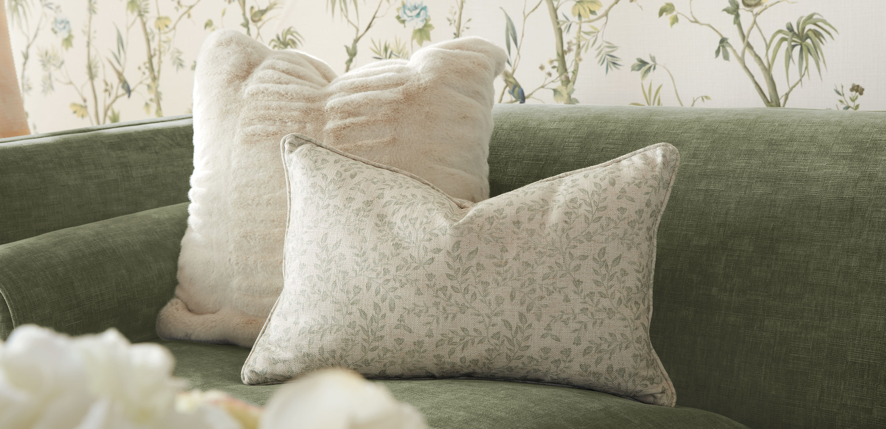 Add texture, sheen, or a pop of color to any room with pillows hand-tailored by Ethan Allen artisans. We'll make your custom lumbar pillow from the curated selection of solid and patterned fabrics you see online; visit a Design Center for hundreds more fabrics—and to add designer accents like rope braid, fringe, contrast welt, and more. Hand-tailored custom lumbar pillow available in solid colors or patterns. Multiple sizes. Available online in the fabrics shown above. Pillow will have self welt trim, with a 95/5 feather-down-blend core. Additional custom pillows our craftspeople can make for you: custom square pillow (with or without pleats), custom bolster pillow Need ideas for mixing and matching fabrics? Check out our fabric collections for inspiration. For additional customizations, to request a poly foam insert core, or to have a designer help you with fabric selection, visit a Design Center or set up a home call.