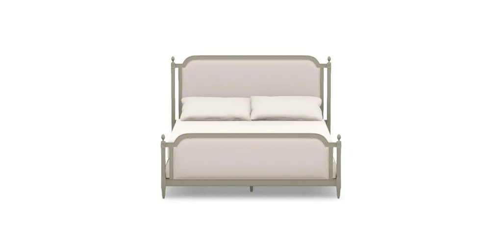The Allesandra bed is where the silhouette and details of a 19th-century antique bed—fluted posts, carved rosettes, and delicate finials—meet clean, modern headboard and footboard panels, which you can upholster in the fabric of your choice. Antique details meet clean-lined upholstered panels; Allesandra combines classic design with a modern perspective Lean back in comfort without worrying about leaving marks; we offer a wide range of beautiful stain-resistant fabric options Engineered panel frame; available in a range of water-based finishes Available in queen, king, and California king sizes Requires both a foundation and a mattress; we recommend a combined height of 24" to 30". Compatible with motion base. If you need help making your selection, ask any designer or click here to use our chart. Footboard height: 30" NOTE: Back of headboard comes standard in Ethan Allen logo tag fabric. The fabrics shown here are our most popular, but if you don't see what you're looking for, visit a Design Center.