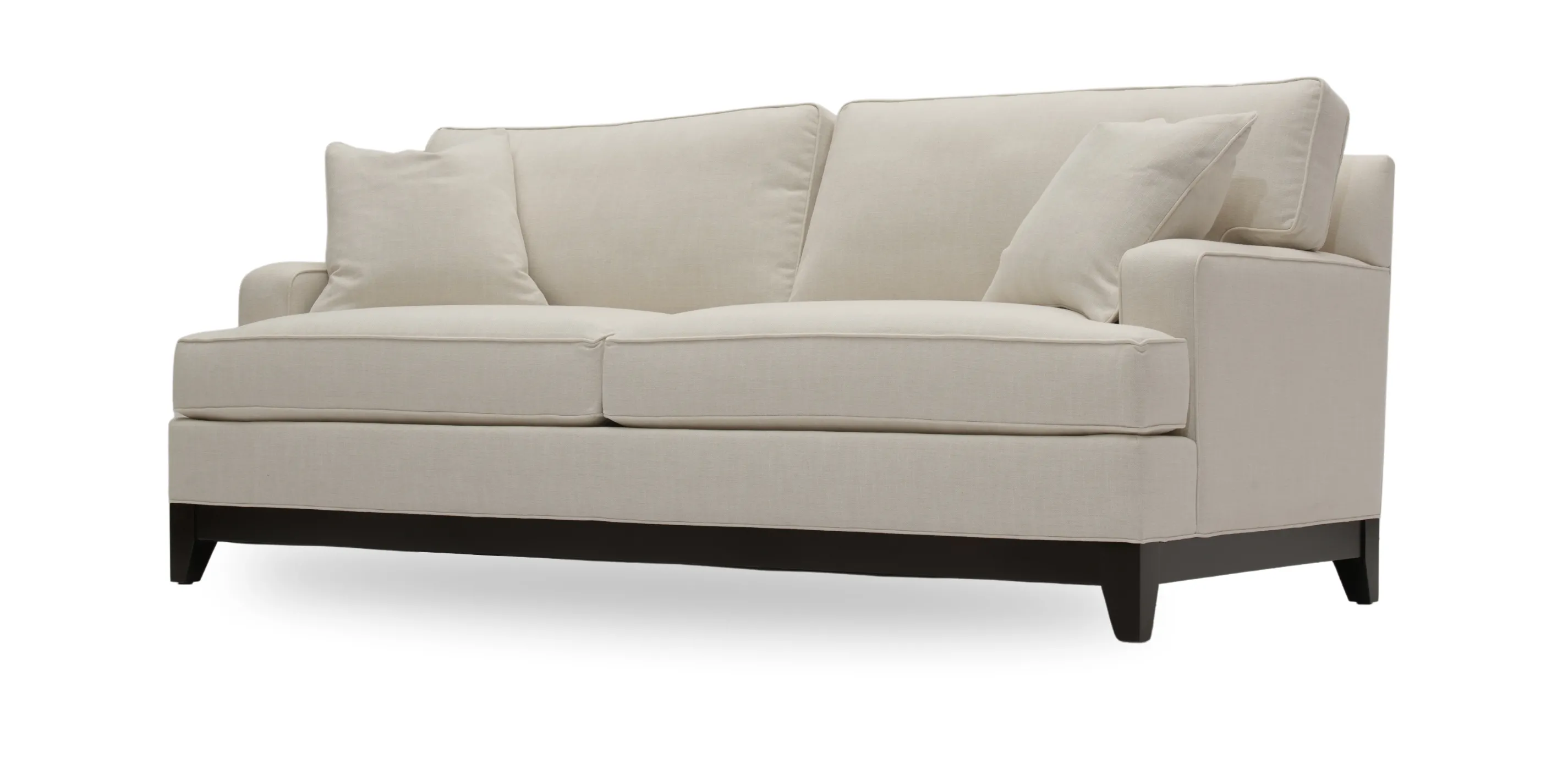This sofa features a signature wood base and track arms with loose back and seat cushions that make Arcata suited for both casual and formal spaces