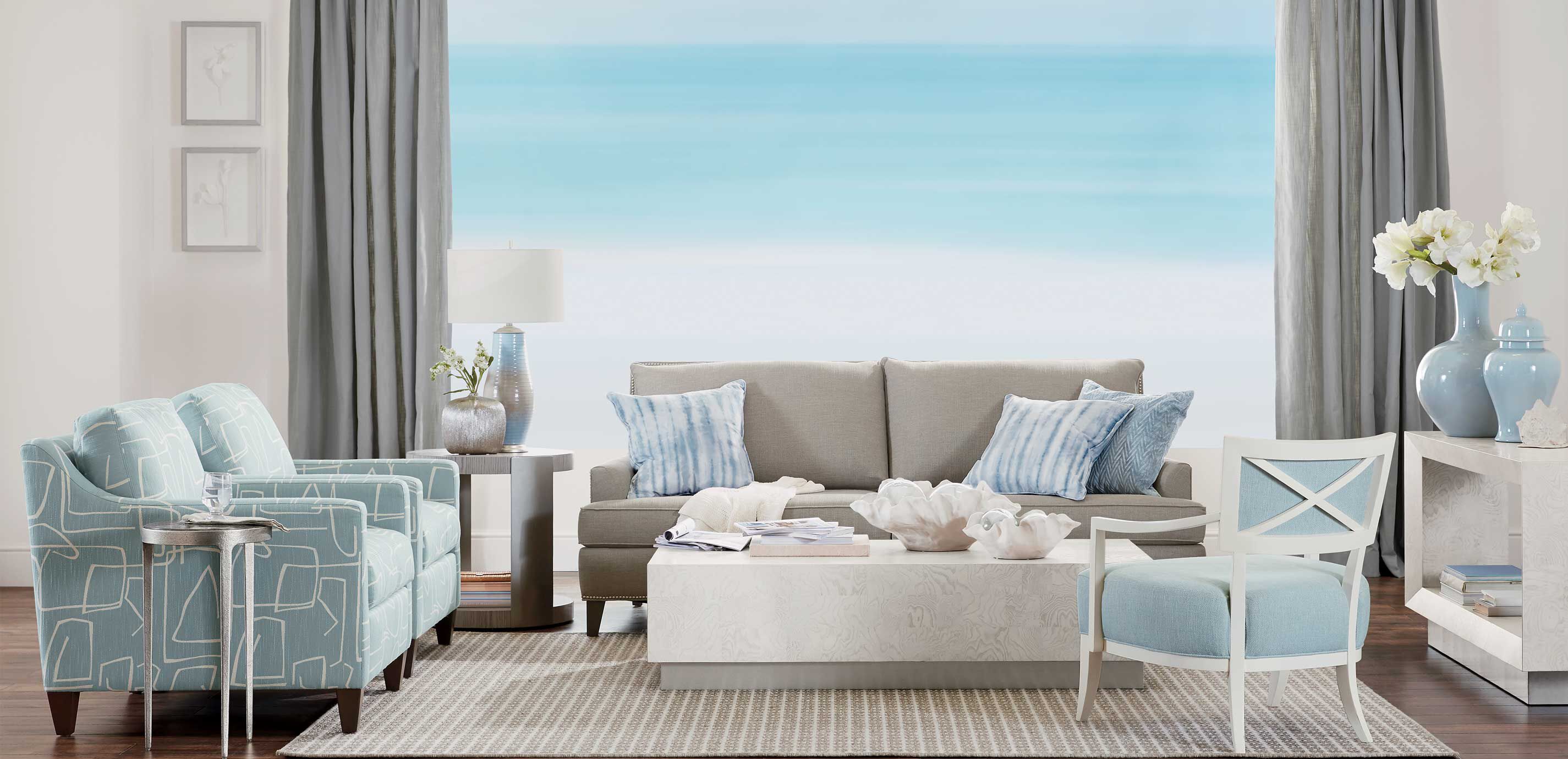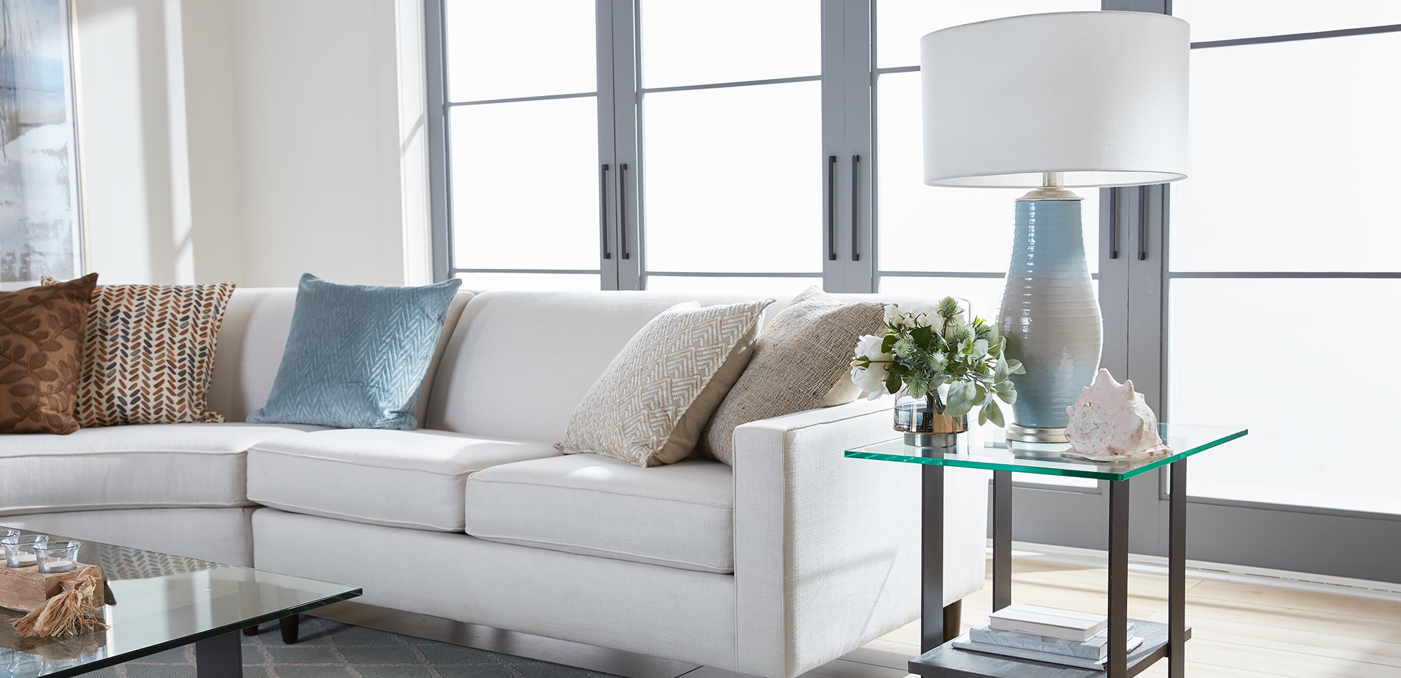 Add a special look to your everyday style with this taupe and blue ceramic table lamp. The classic silhouette of its base is hand-thrown from natural terracotta, then finished in a reactive glaze, creating a unique ombre-like blue and taupe coloration. A wooden table lamp base, hand-finished in a textured champagne foil patina, adds an elegant touch. The soothing style of this terracotta table lamp makes it a natural for coastal homes as well as any casually styled room. Beautiful ombre-like blue and taupe lamp, suitable for coastal homes and casual settings Made of terracotta and then finished with a reactive blue and taupe glaze Rests on a wooden table lamp base finished in textured champagne foil Off-white linen rolled-edge shade Uses one 15-watt LED bulb; on/off knob UL listed Azora is glazed by hand using a reactive glaze where tones may vary slightly between lamps