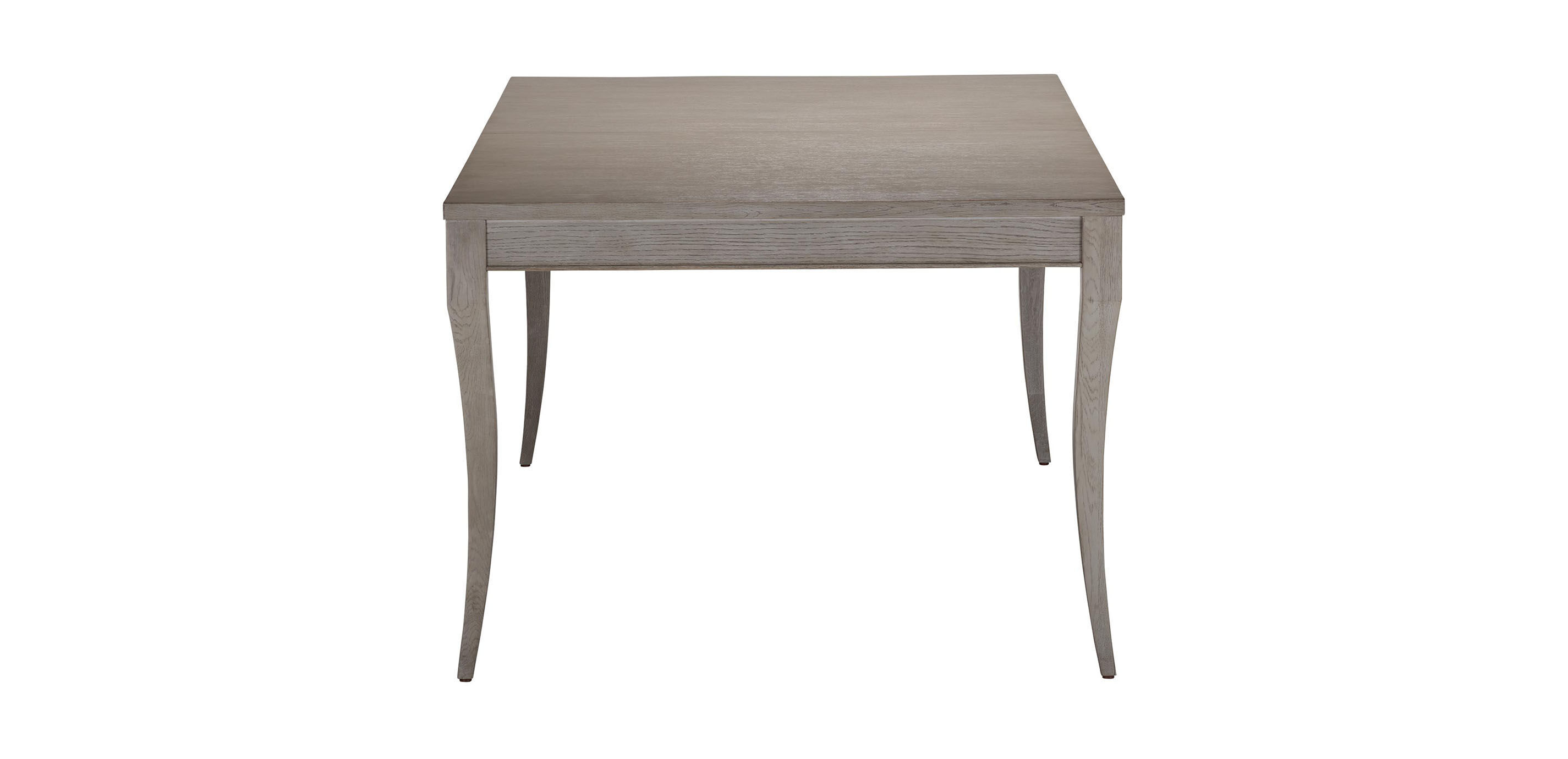 This stunning dining table will turn heads in your home. Precise lines, an exotic wood finish, and graceful saber legs come together elegantly in a chic transitional design that's simply beautiful. Crafted from mozambique and mahogany veneers with Indonesian mahogany solids* Opens to 108" with two 18" leaves, seats up to 10 Traditional design with updated, modern styling and saber-shaped legs Legs and aprons are complemented with a contrasting, decorative Mozambique veneer tabletop Available in Citrine (321), an on-trend finish that coordinates beautifully with our other dining furniture. Citrine is a cool brown stain with natural variations. Order a finish sample: Citrine (321)