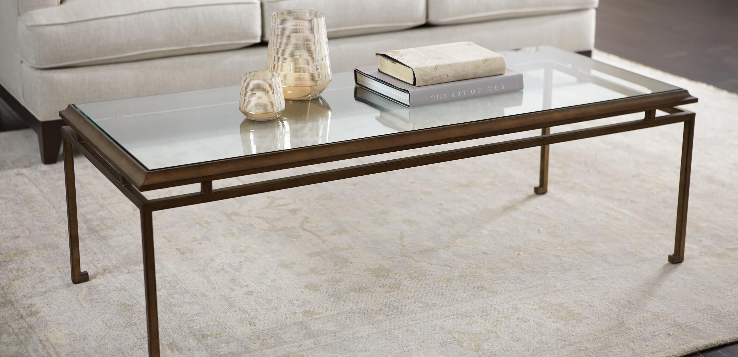 Showcase your favorite plants, stack your most beloved books, or relax with an after-dinner drink in a living room graced by our rectangular Beacon coffee table. Its well-traveled vibe and clean lines set an elegant tone while its glass top reflects and channels natural light. Crafted from metal tube frame and tempered glass top Inset tempered glass top Steel frame with decorative antiqued finish Beacon Square Coffee Table, Beacon End Table, Beacon Console Table also available