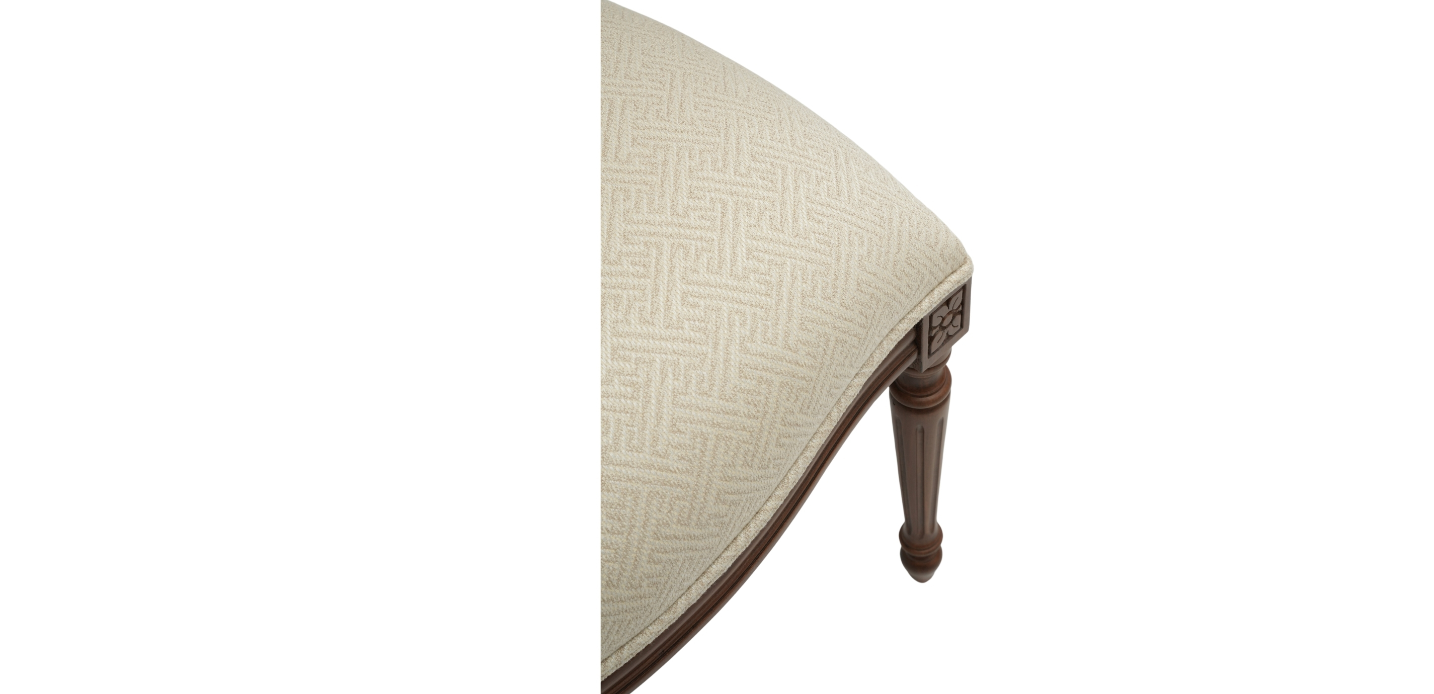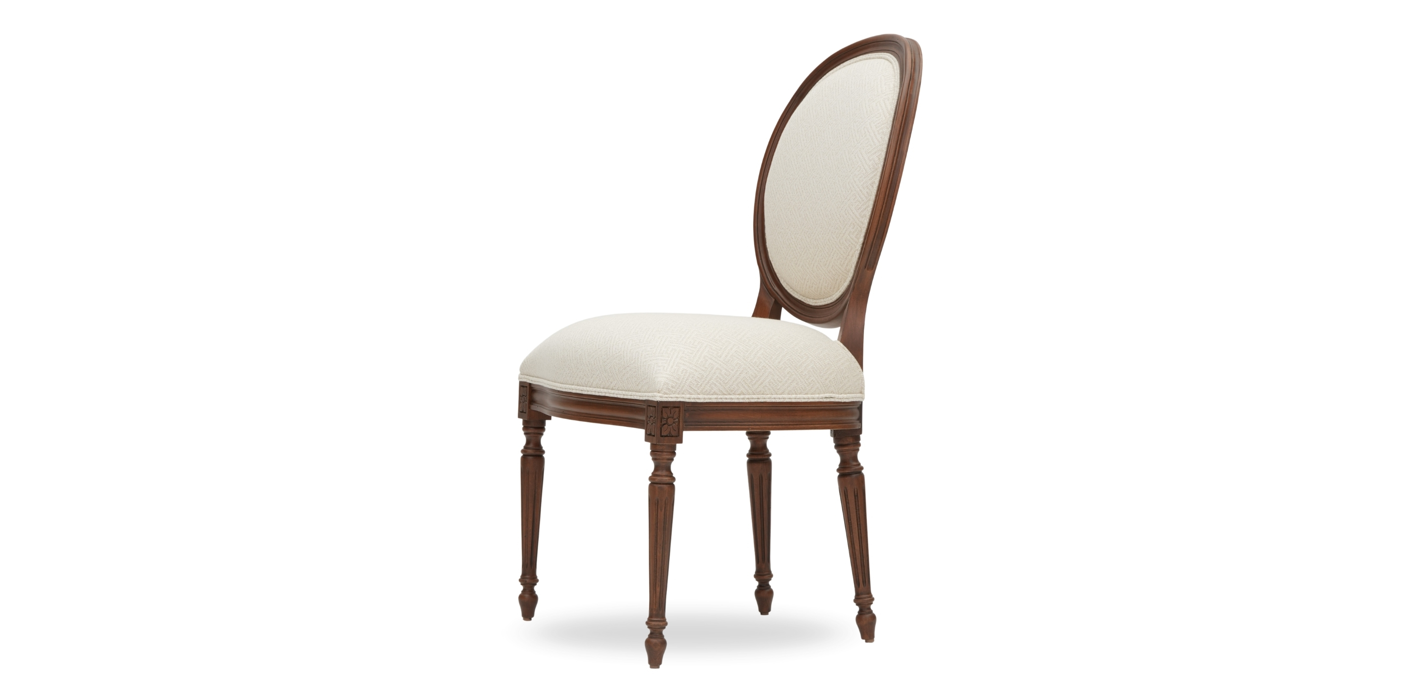 Our simplified interpretation of a late-Neoclassical French chair. Less fuss. More clarity. Comfortable for today's bodies. Fully hand-carved. A dining chair with presence. An accent chair with panache. An opportunity for self-expression: In any of our hundreds of fabrics, this chair will say a lot about you. With its fully hand-carved wood frame, tight back and seat, and double welted body, Cassatt is our simplified interpretation of a late Neoclassical French side chair Foam and fiber cushion provides a structured seat Carved wood frame crafted of kiln dried solid hardwood, available in several water-based finishes Stain-resistant fabric prevents damage from spills; great choice for homes with families and pets