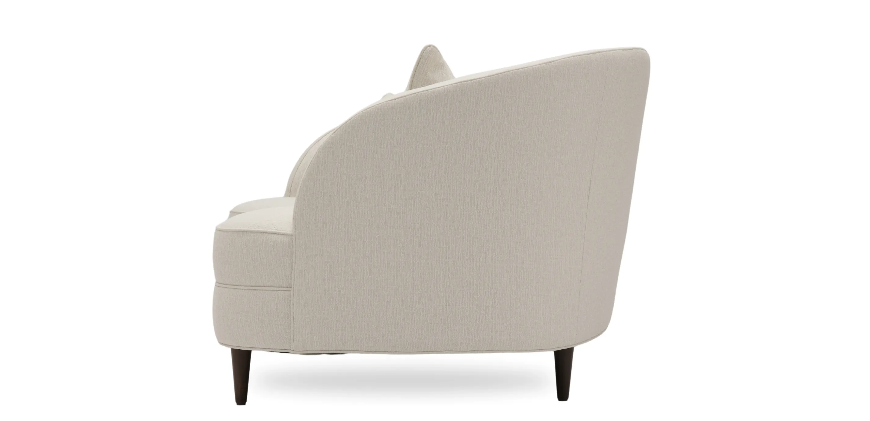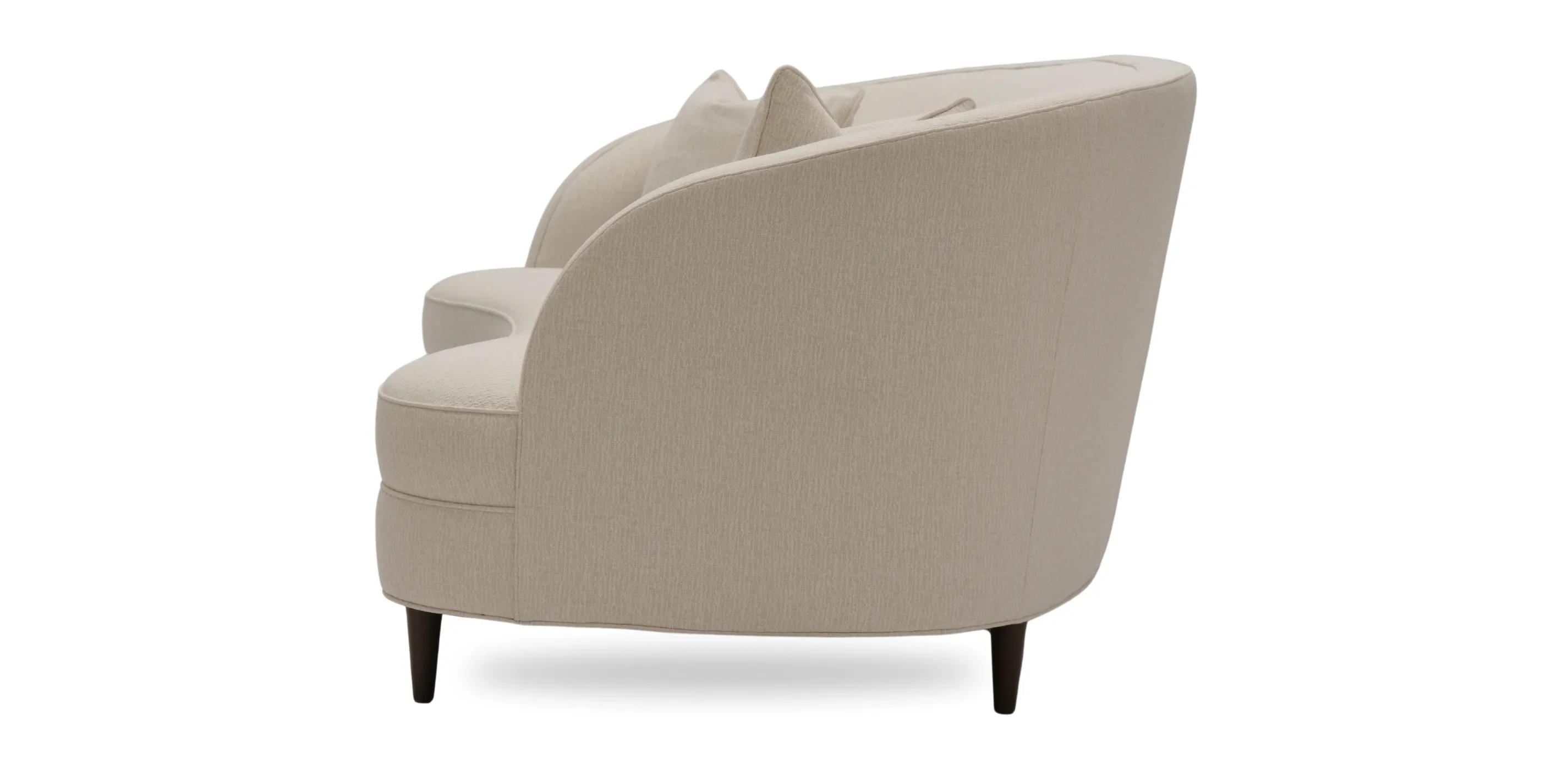 An echo of Old Hollywood that still resonates today, our Channing curved sofa is a beautiful combination of modern scale and timeless design influences. A revival of Art Deco sofa styles, with a nod to Bergère sofas of the 1960s and 1970s, Channing has an elegant tailored seat, graceful tapered legs, and a softly curved barrel back.