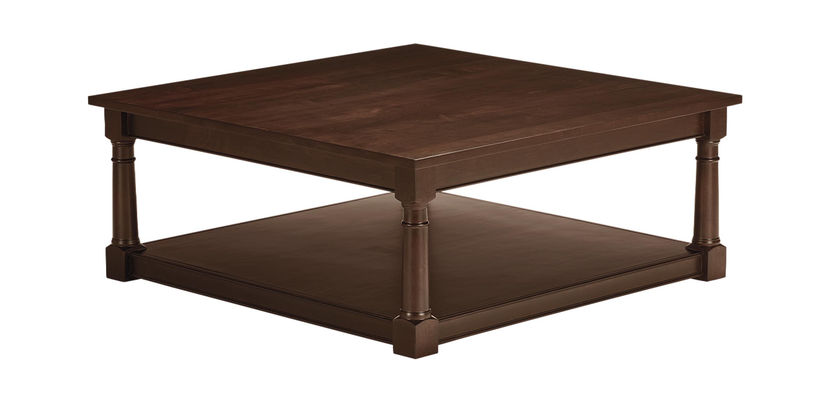 Now available for fast delivery in some of our best-loved finishes. Our Connall coffee table features a square profile—it's an especially good fit with a sectional—and neoclassically inspired posts that give it unmistakable formal flair. Neoclassically influenced 44" square wood coffee table Crafted from maple or birch, or oak depending on the finish selected Architectural pillar legs. Plinth base with lower storage shelf Available for fast delivery in Rye (226), Caraway (277), Pekoe (365), Nightfall (368), and Homestead Gray (463). Willing to wait in exchange for more options? The Connall square coffee table is also available in additional finishes. Please note that while samples are an excellent representation of our finishes, each piece is crafted by hand and the final finish may vary slightly from the sample. Also available in Quick Ship finishes: Connall rectangular coffee table, round coffee table, end table, and console table Levelers ensure stability even on uneven surfaces
