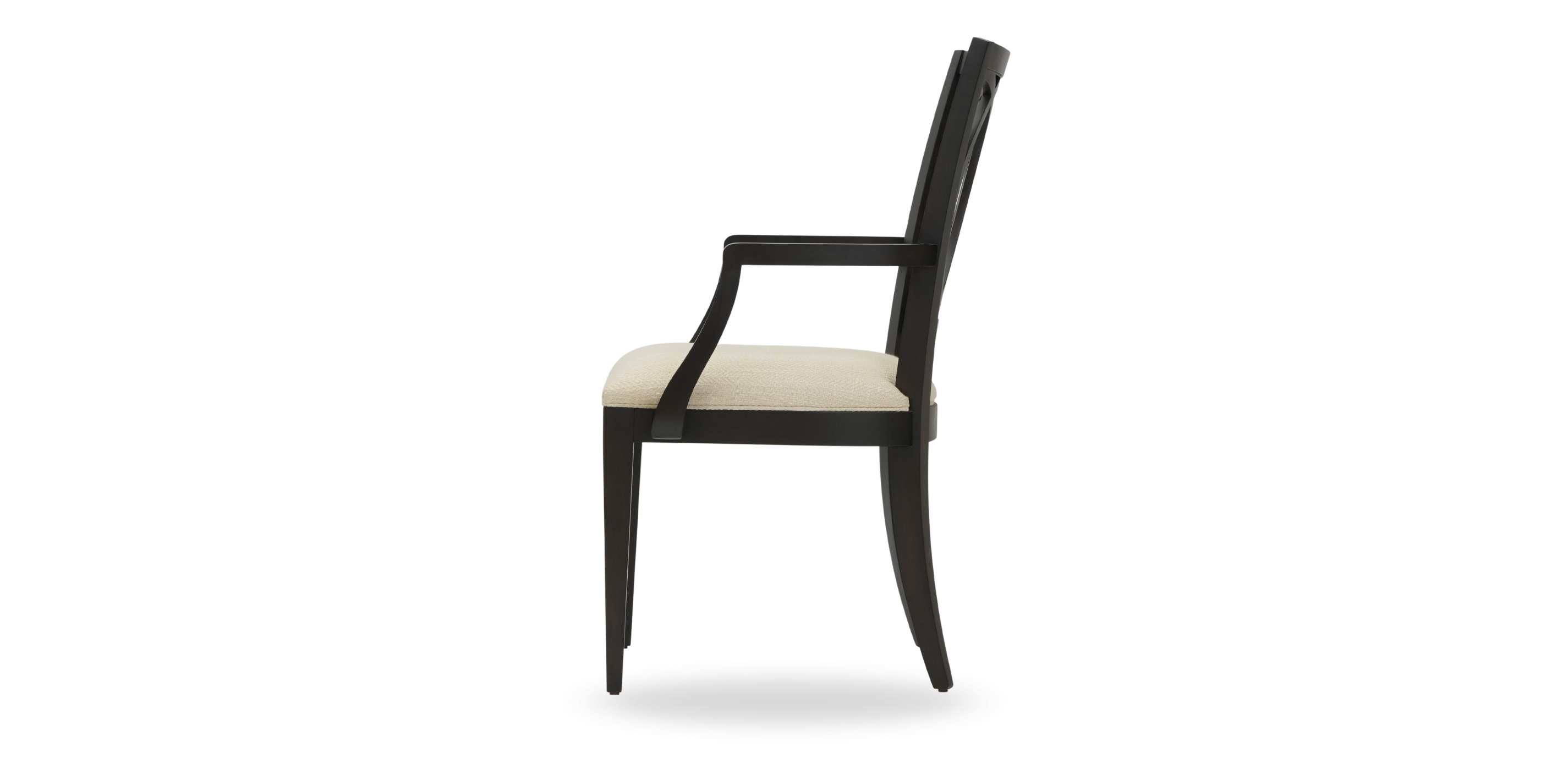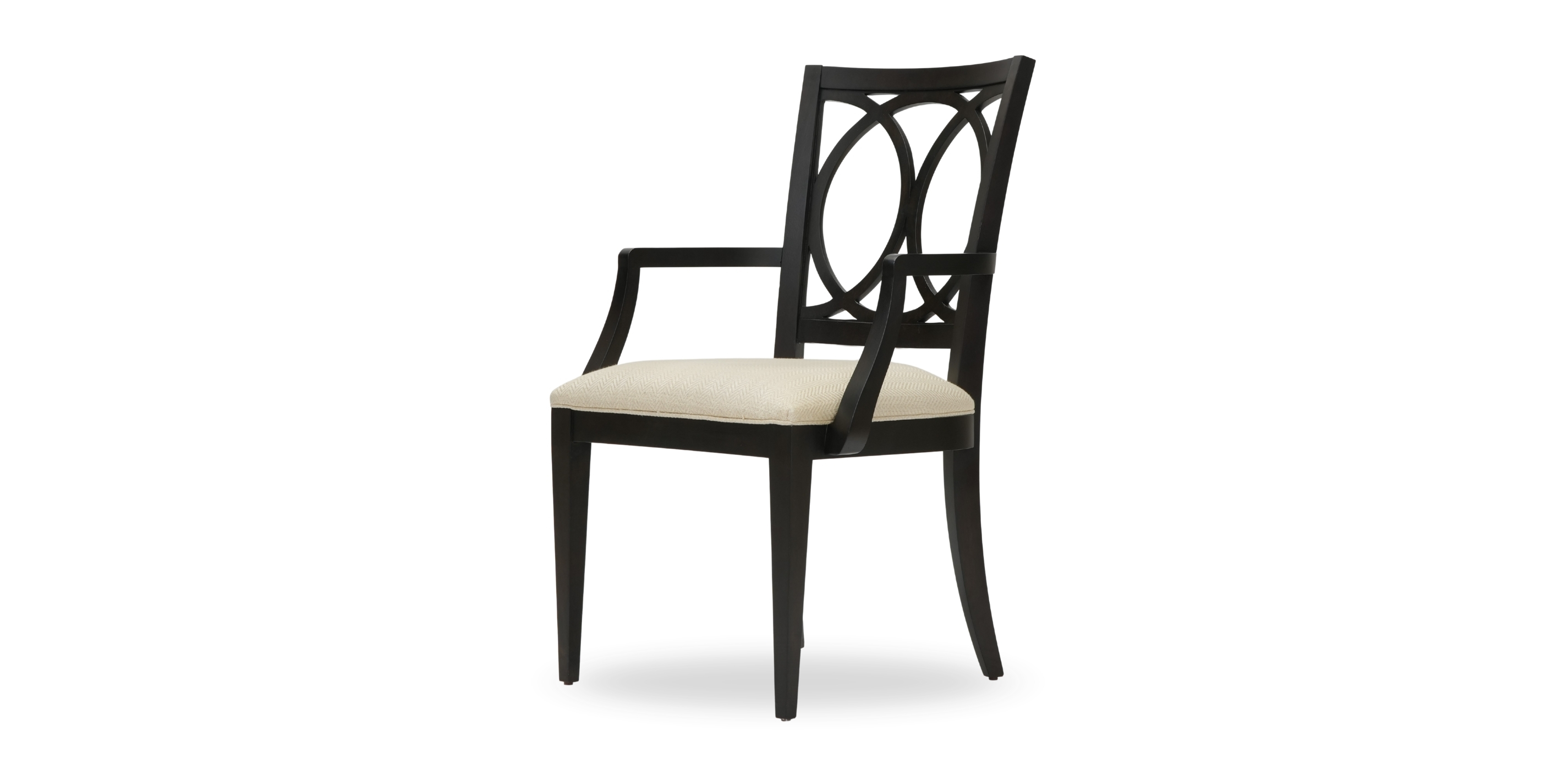Having a reserved seat at the head of the table never looked so good. The Cyra dining armchair's dramatic back design makes an instant statement. Wood dining armchair with dramatic back design. Upholstered seat; tapered leg.