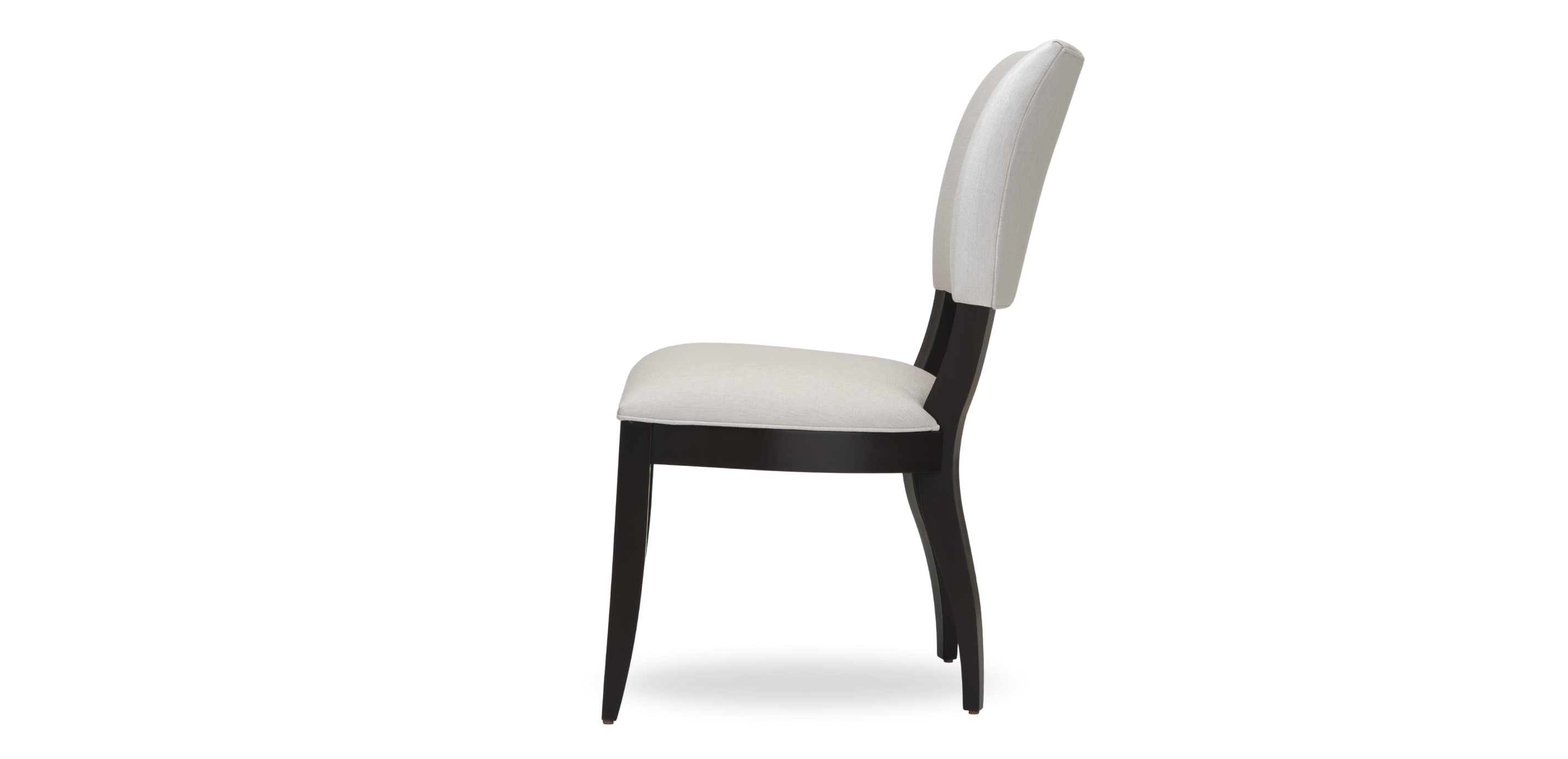 Well designed and so refined, our shapely Drew dining chairs bring old school glamour up to date. They're the perfect complement to the Barrymore dining table. Saber legs mix with a tight upholstered back and seat create a look that's both glamorous and comfortable Durable, comfortable foam and fiber cushions can be upholstered in a stain-resistant fabric for added protection against spills Constructed from kiln-dried solid hardwood for long-lasting quality