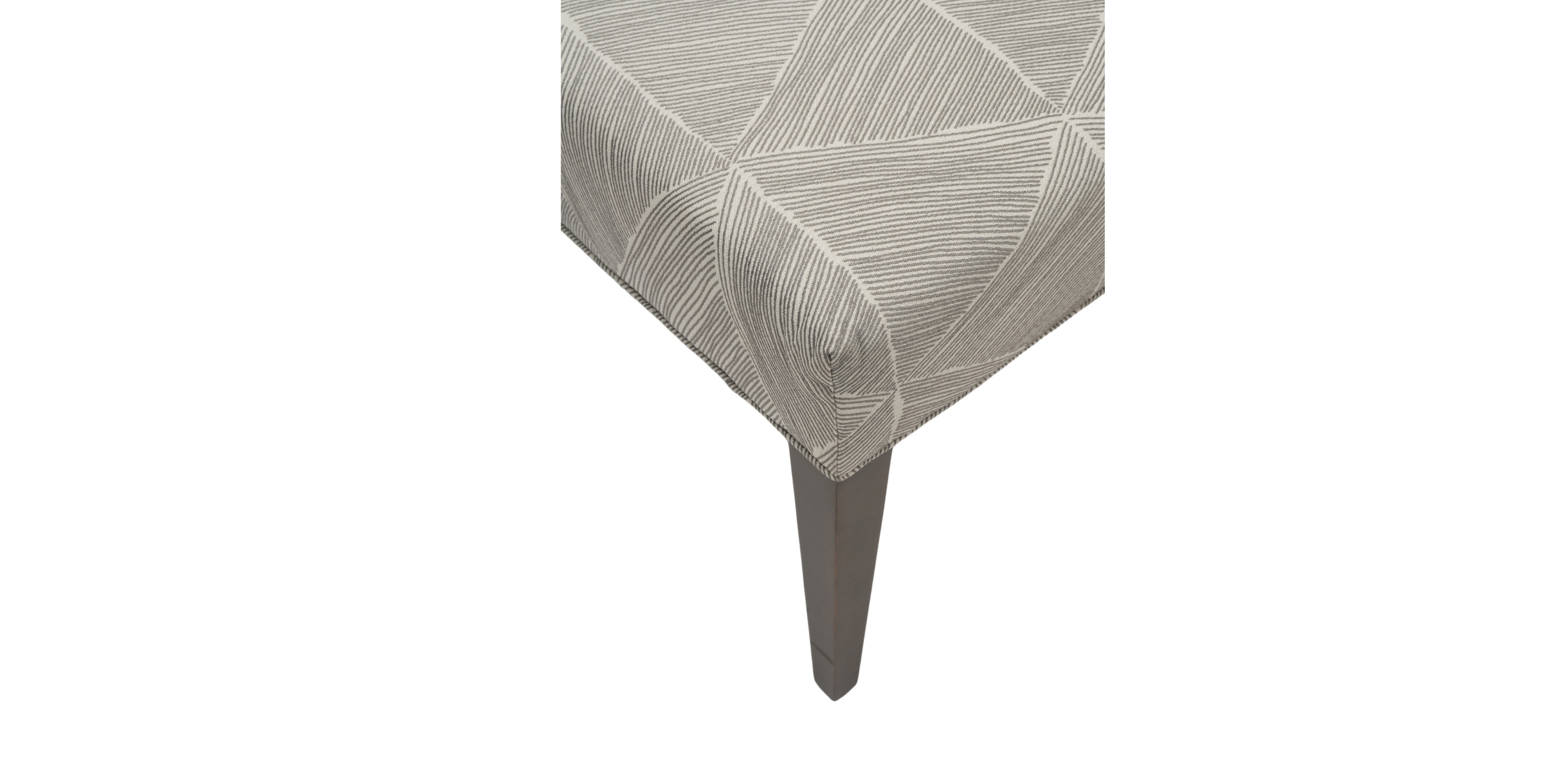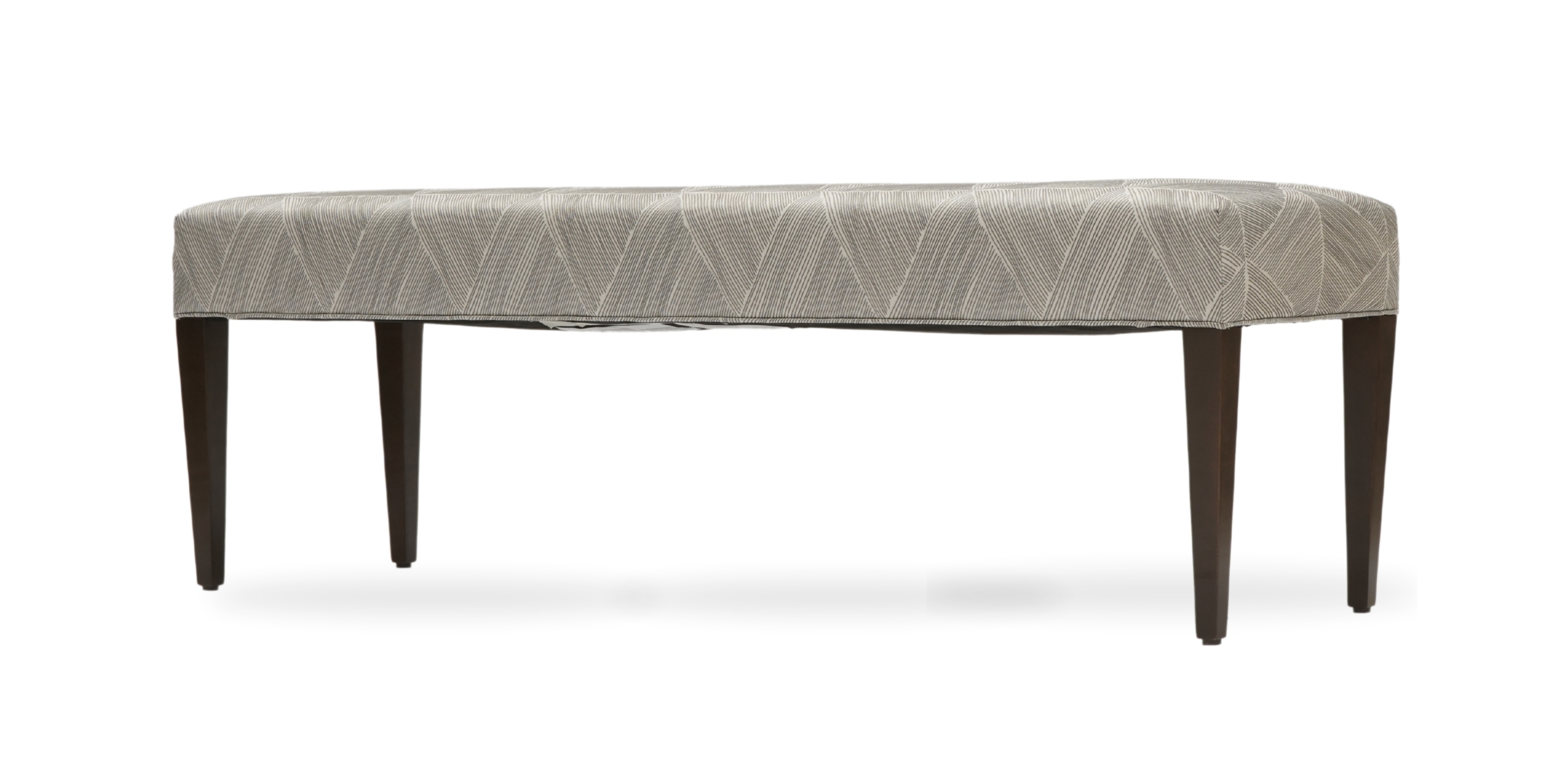 This sleek bench is available in an array of fabrics and leathers that range from rugged to sleek and chic, five top tailoring options, and with tapered or spool wood legs. This fully upholstered bench features a welted seat and wooden legs that is the perfect canvas for endless possibilities Durable, comfortable foam and fiber cushion can be upholstered in the stain-resistant fabric of your choice, which helps to prevent damage from spills Engineered panel frame for superior strength and long-lasting durability Tapered legs shown in Raisin (939), a cool, dark brown, water-based finish; choice of smooth or button-tufted top. Additional leg and top tailoring options are available in a Design Center. Also available in leather The fabrics and finishes shown here are our most popular, but if you don't see what you're looking for, visit a Design Center to view additional options.