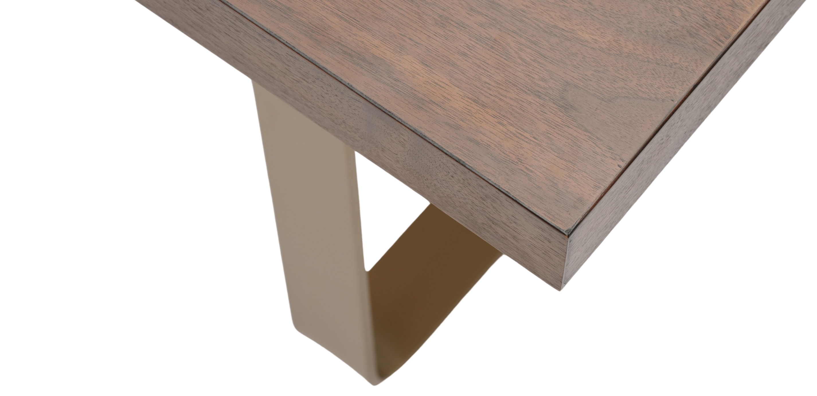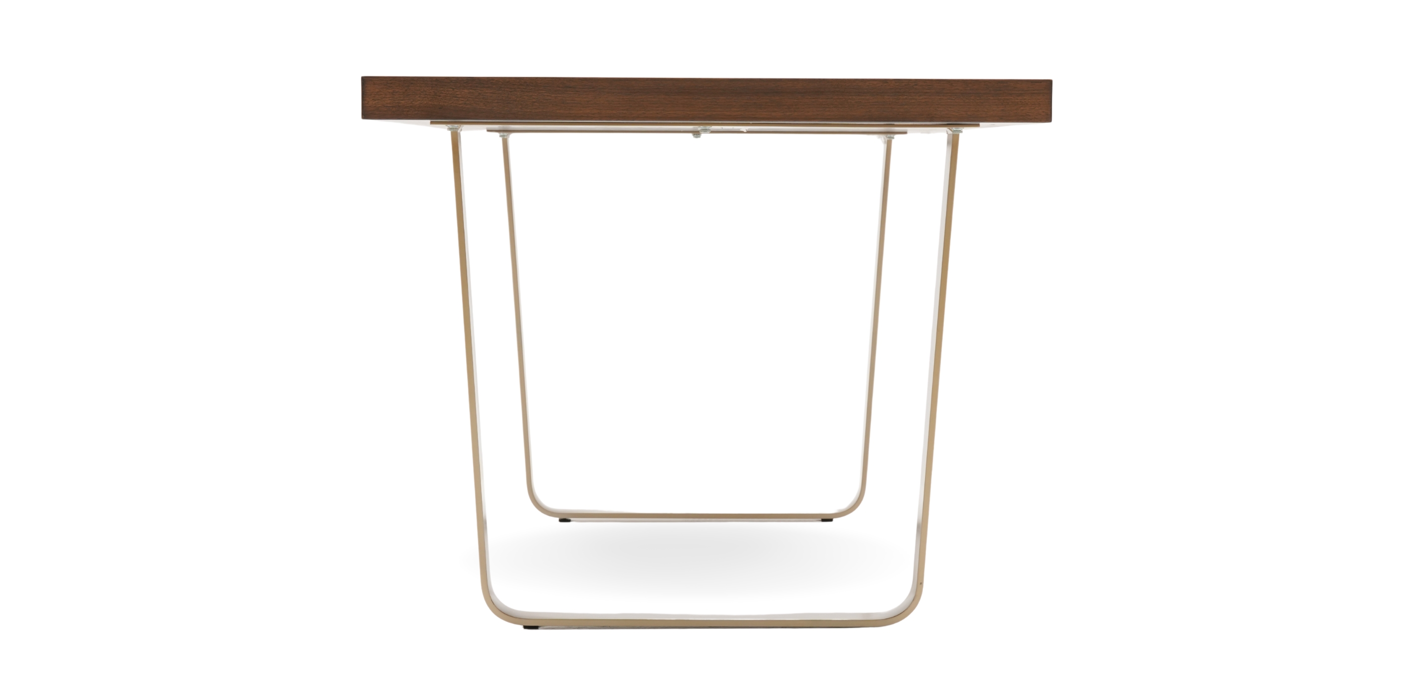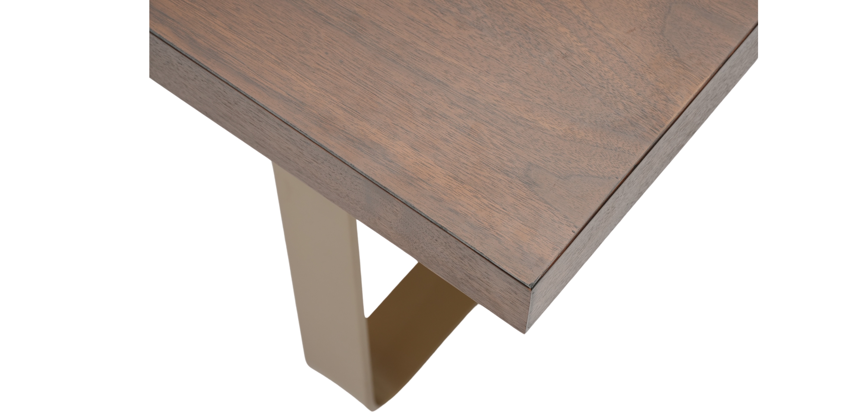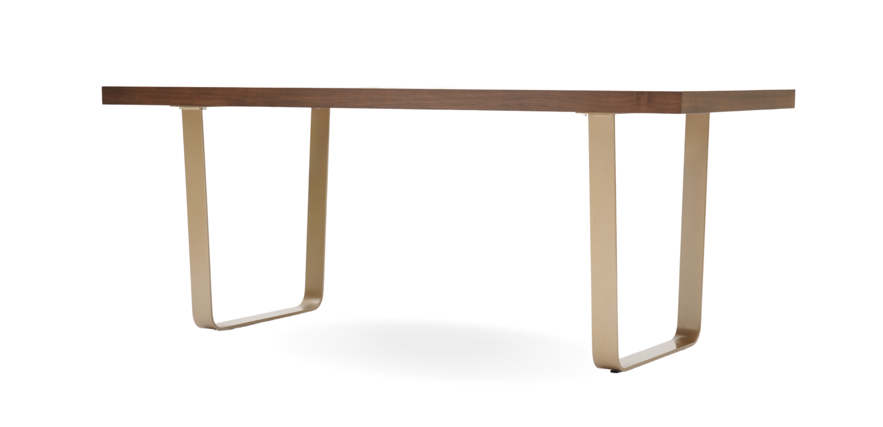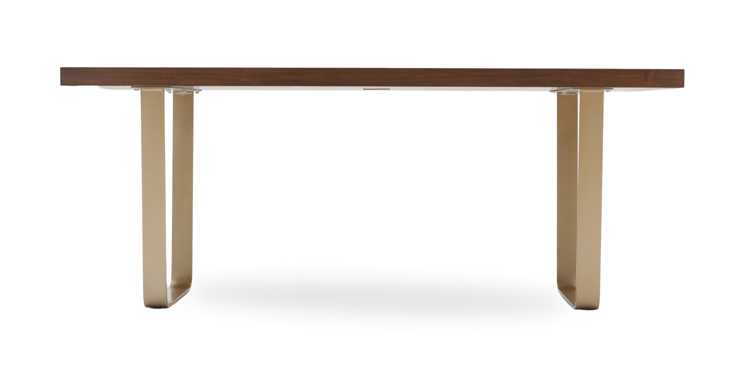 The Hoyt modern rectangular dining table is what happens when mixed materials come together in the most stylish way. You'll love serving up a classic fondue on a timeless wood and metal dining table that makes everything look delicious. With a walnut veneered top and free-form metal base, it’s mid-mod styling reinterpreted for this century—and beyond. Crafted from cathedral walnut veneers and steel Fixed top Seats up to 8 U-shaped steel legs Easy-to-use levelers ensure stability, even on uneven floors