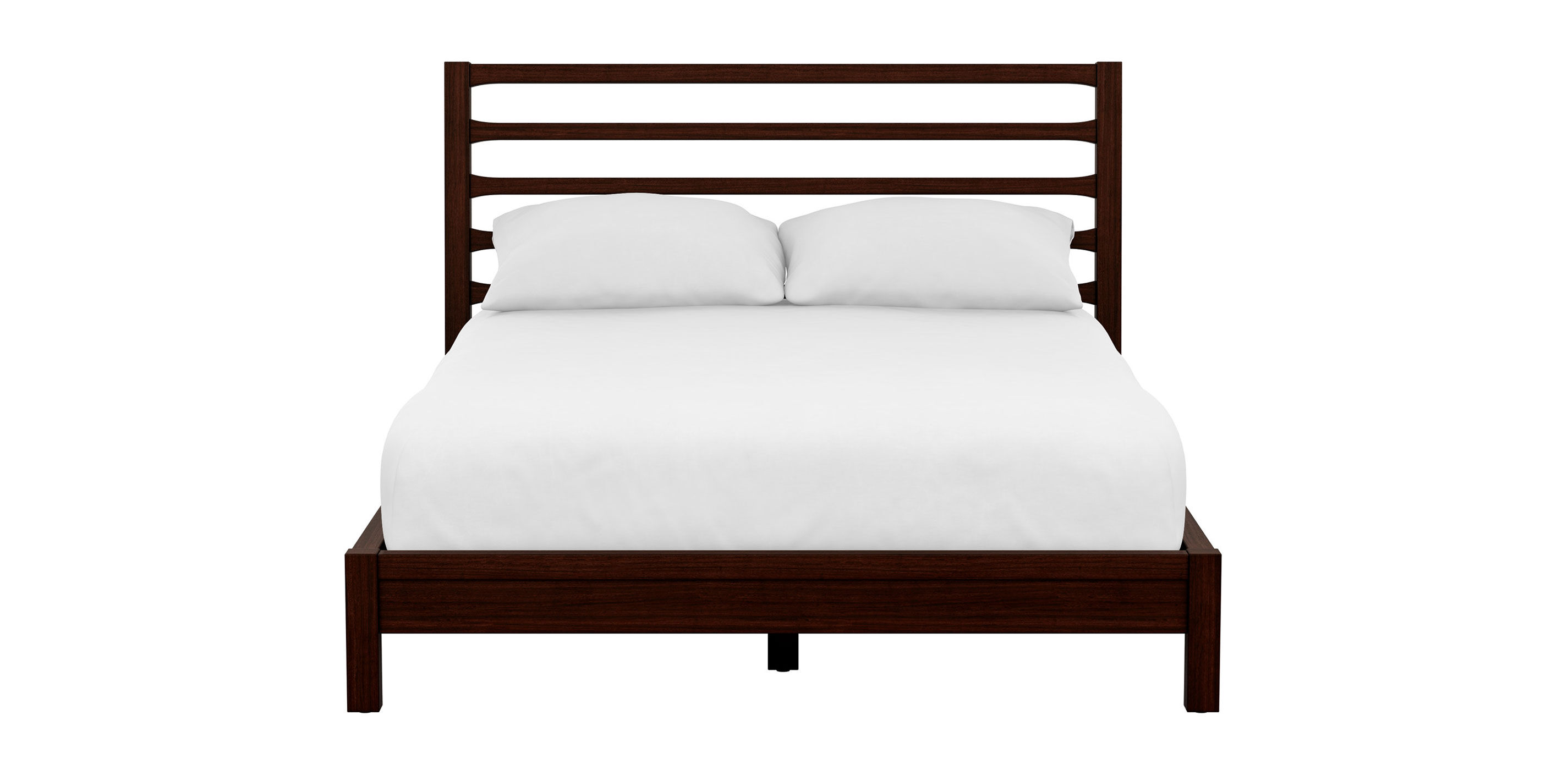 Petite and unassuming, this small night table is finished on all sides so it can float in any space (do think outside the bedroom). Its single drawer, The Montclaire midcentury-modern bedside table is what happens when form meets function and they really hit it off. Two roomy drawers with minimalist vertical pulls (created especially for this design) sit atop a simple steel base, lending it an unfussy profile, as befits a midcentury-inspired piece. It’s versatile—it could also work as a two-drawer end table in a living room—with handsome cathedral walnut veneers (those paper-thin cuts of wood that are applied to the finest furnishings). Huntsville is a new-fashioned Indonesian mahogany low-profile bed—and a modern take on Parsons design—that invites stylish rest and relaxation. This bed features simple lines in spades: a clean-cut headboard with widely spaced lines, a low footboard, slats that support a standard or ultra-low foundation and mattress. Crafted from Indonesian mahogany solids and veneers Requires both a foundation (standard or ultra-low) and a mattress; we recommend a total sleep set height of 17.5" Find the right mattress and foundation for your bed frame