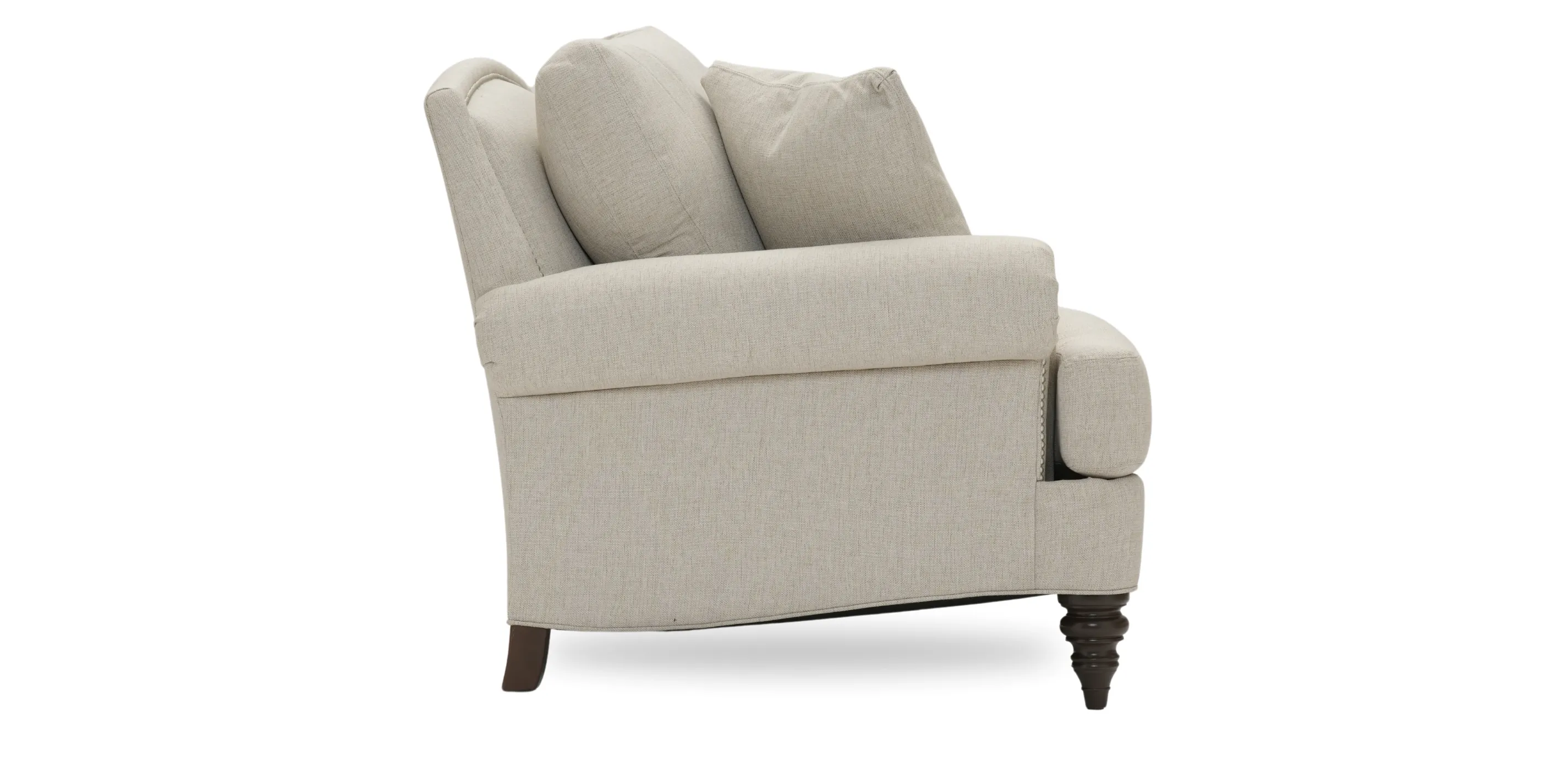 Legs shown in Raisin (939) water-based finish with optional choice of nailhead trim in brass or nickel finish