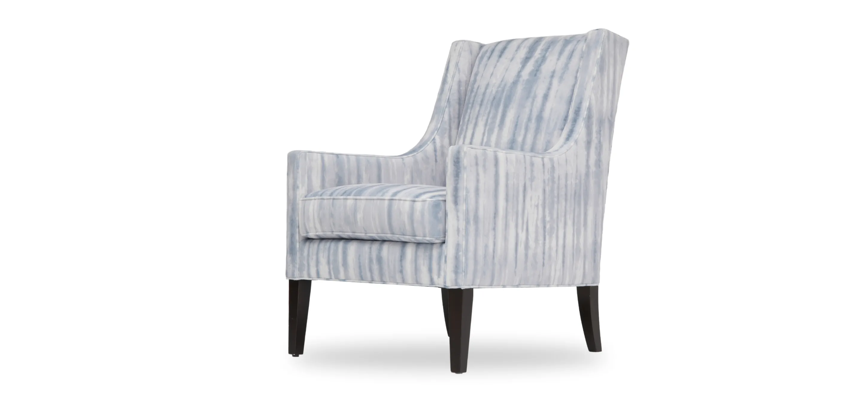 Give your design dreams wings to fly—and add our Kent wing chair to your living spaces. Inspired by traditional wingback chair lines, it gets a modern sensibility from its statuesque frame, low seat, and elegant tapered legs. Thanks to its petite silhouette and trim L-wings, this tall wing chair is a beautiful option for cozy yet sophisticated spaces. Customize it in your favorite fabric, and add nailhead trim for a one-of-a-kind designer look. A tall wing chair with petite L-wings and tapered legs for a modern profile Upholster in the fabric of your choice; we offer stain-resistant options that are both beautiful and suitable for homes with families and pets An engineered hardwood frame provides superior strength and long-lasting durability Poly-wrapped foam cushions provide a soft, structured seat Tapered legs shown in Raisin (939), a rich, cool, dark brown water-based finish; optional nail head trim shown in standard pattern or alternate pattern in brass or nickel finishes Also available in leather Additional fabrics, finishes and options are coming soon! Visit your local Design Center or chat with a designer online to learn more.