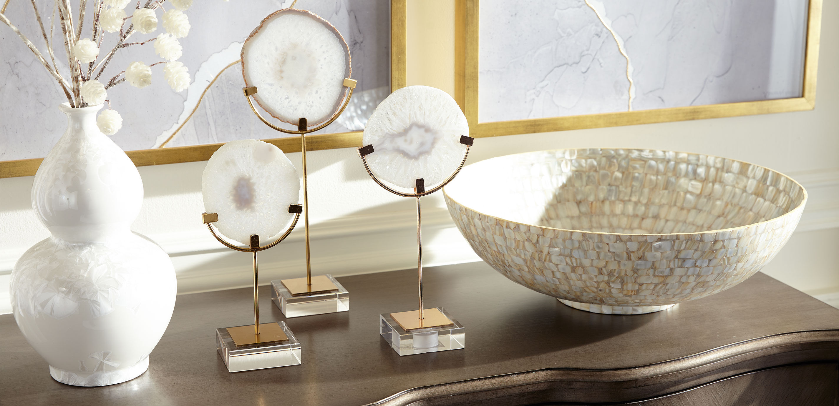 Our artisans handpick beautiful slices of agate, each one with its own unique markings,