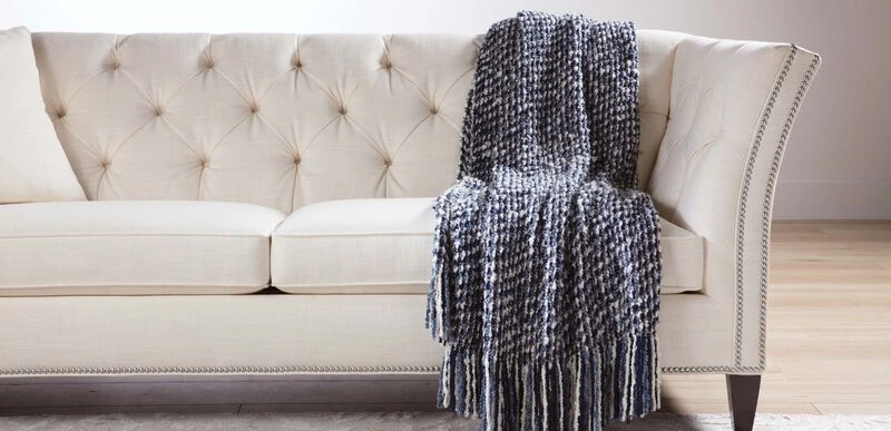 You’ll be in the throes of comfort with this all-season boucle throw blanket. Rich in color and softly textured, with a nubby uneven pile and generous fringed ends, it’s both fashionable accent piece and inviting cozy throw. Crafted in New Hampshire, the Mesa throw has a warm, welcoming vibe that will always make you feel right at home.
