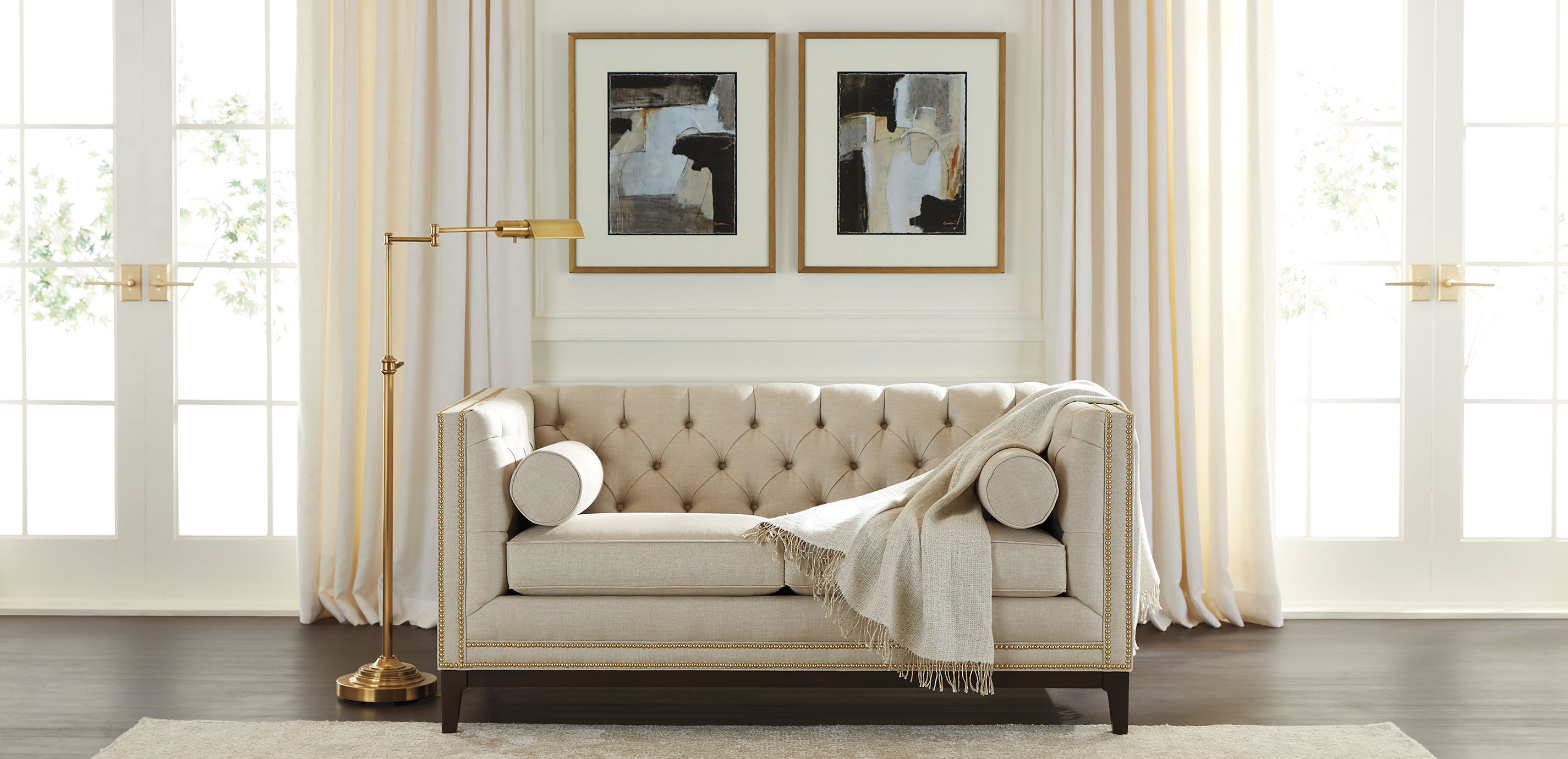 A study in the deliberate manipulation of shape. The image’s deckle edges amplify the abstract's lines, adding character and texture to the print. Presented in a hand-finished brushed gold frame, it's one of a series of three.
