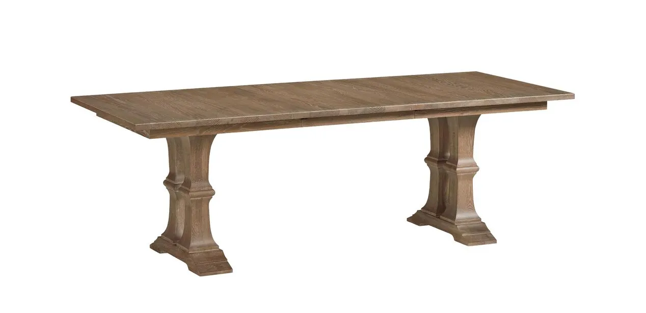"Featuring sculptural, neoclassically influenced double pedestals, our Piermont dining table can go formal or farmhouse depending on your finish choice. Available in two lengths and two top styles, with an extension top that makes more room for special occasions, and crafted by hand in our workshops.