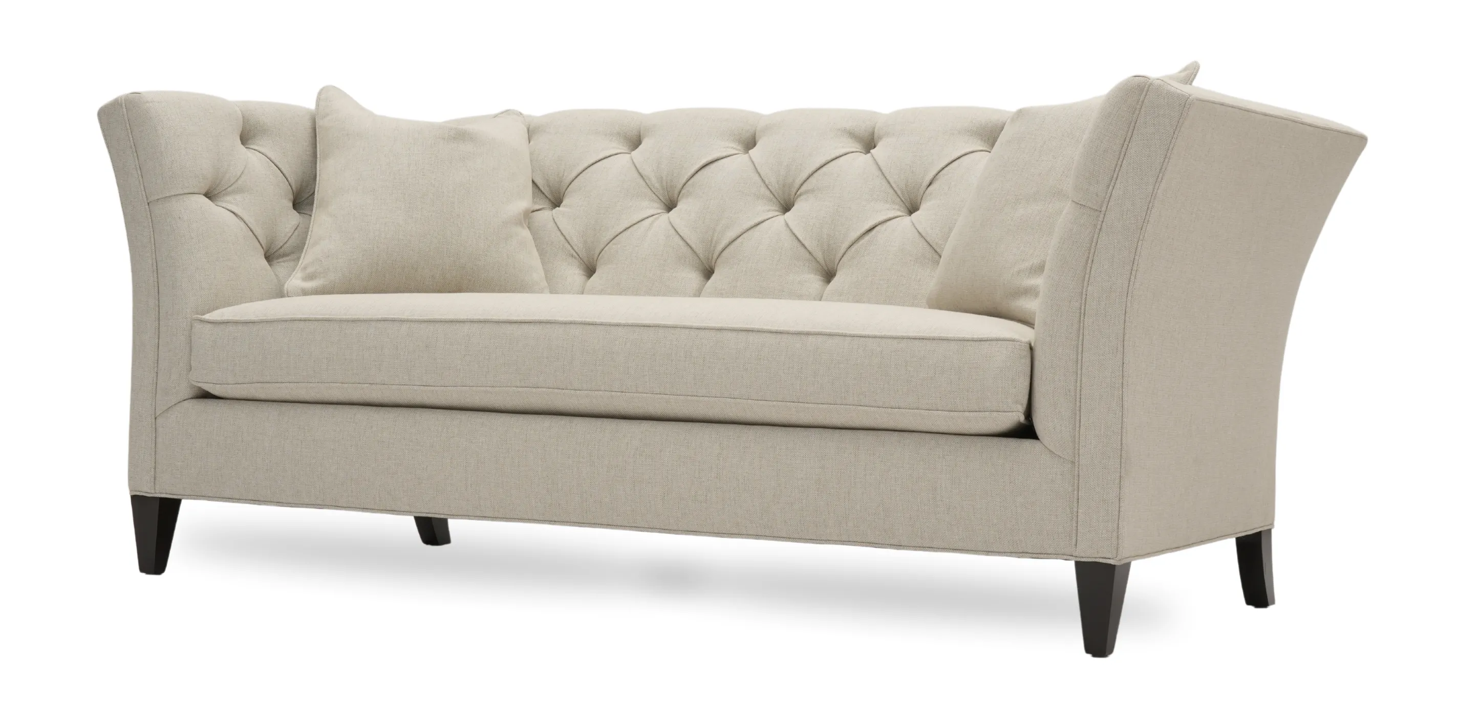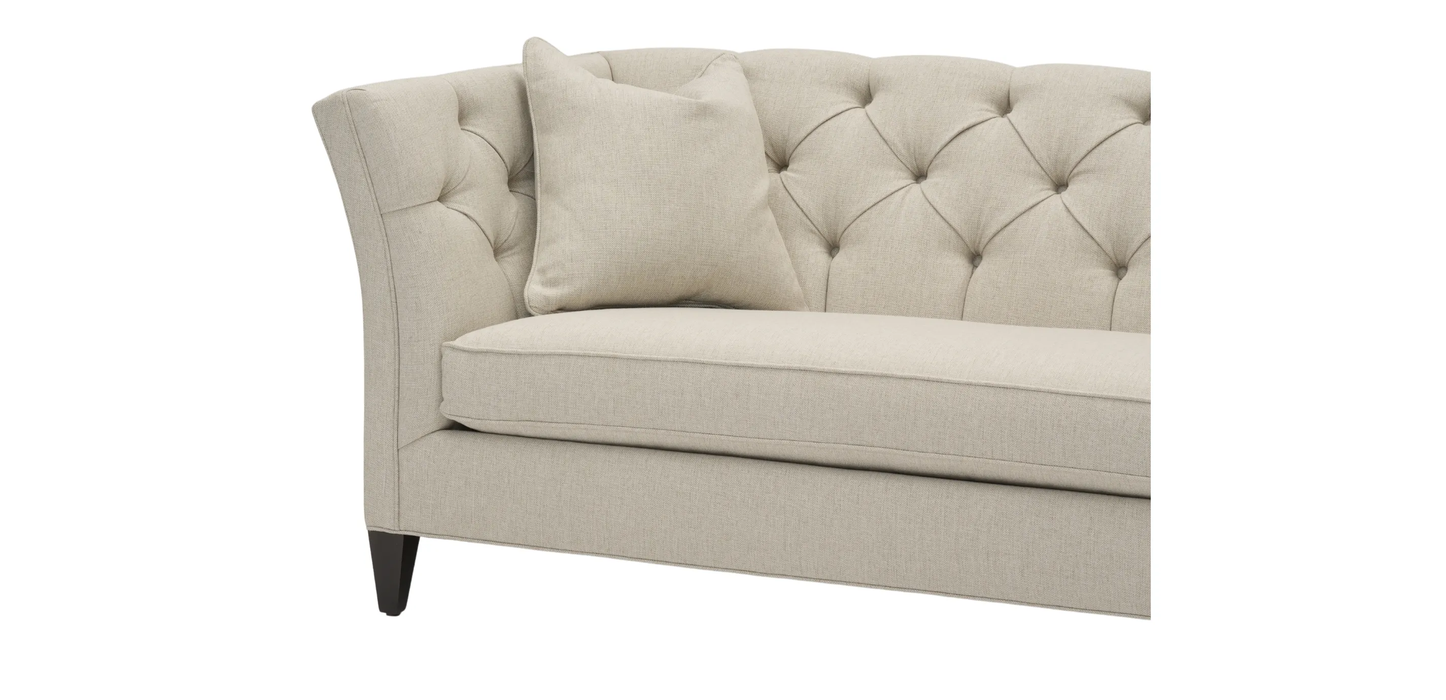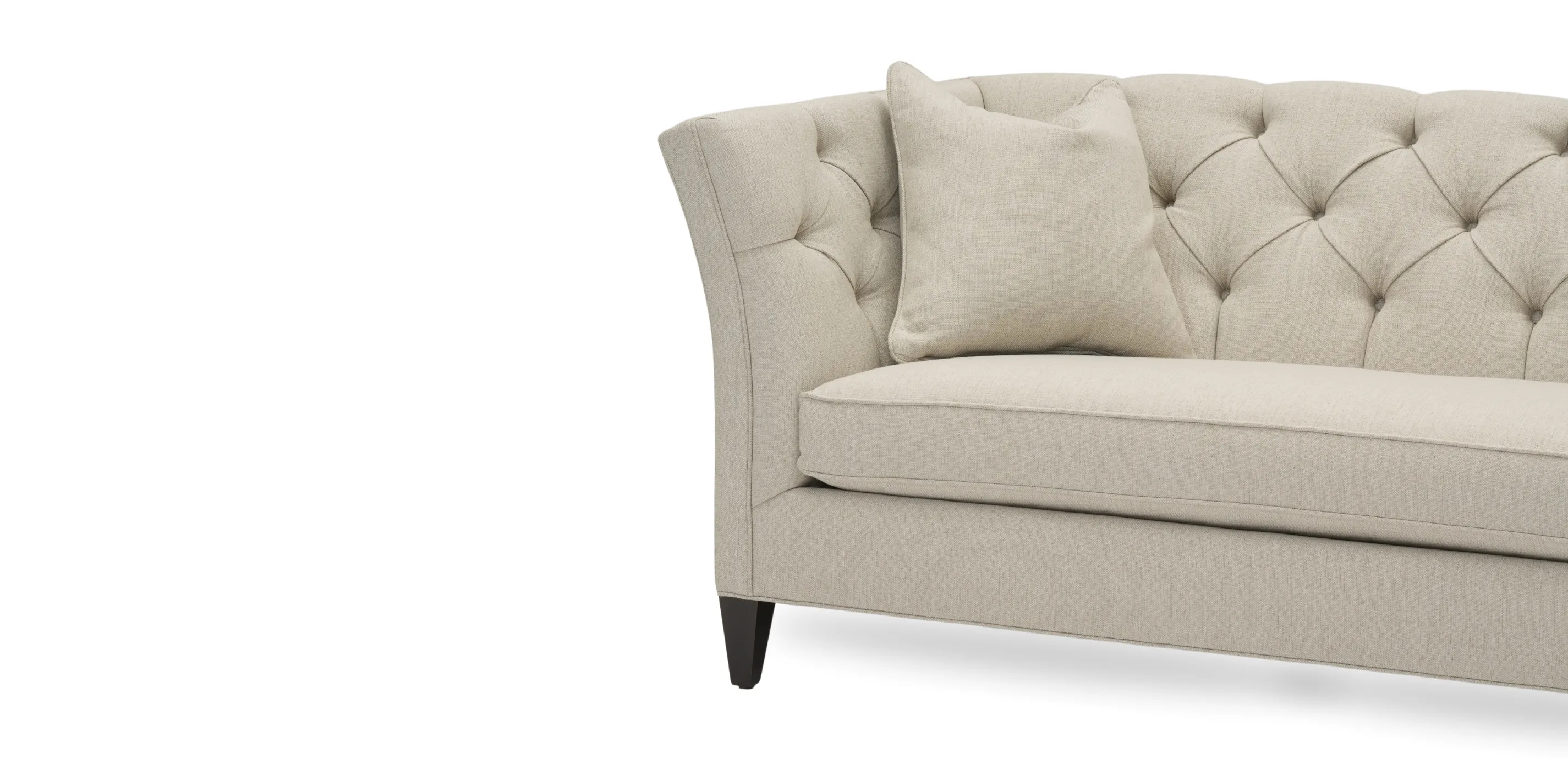 This sofa features deep seats, a high back and sides, and tapered legs. Stately curved and unfussy details. Shelton is all about relaxed glamour with classic diamond tufting and perfect curves.