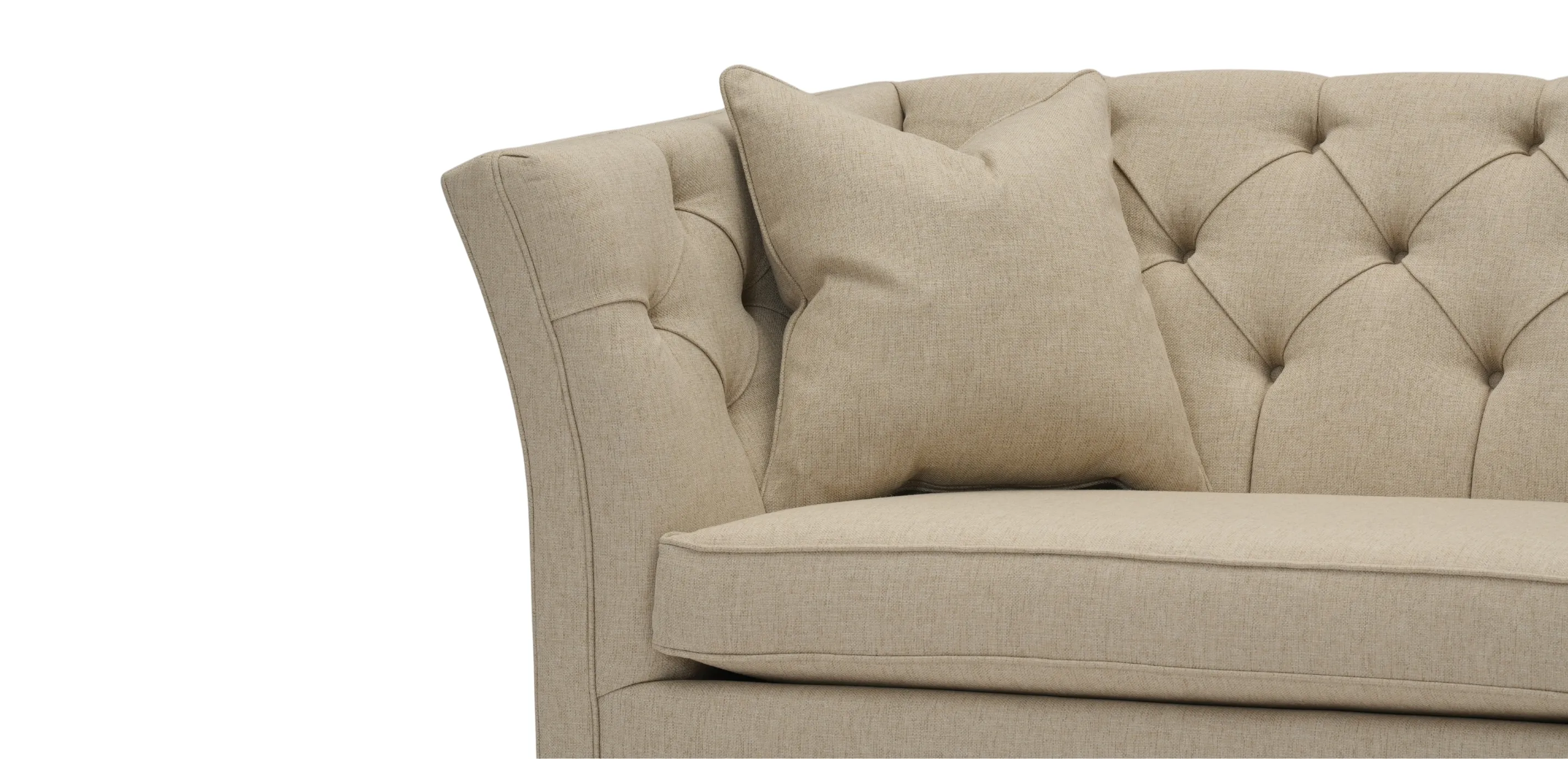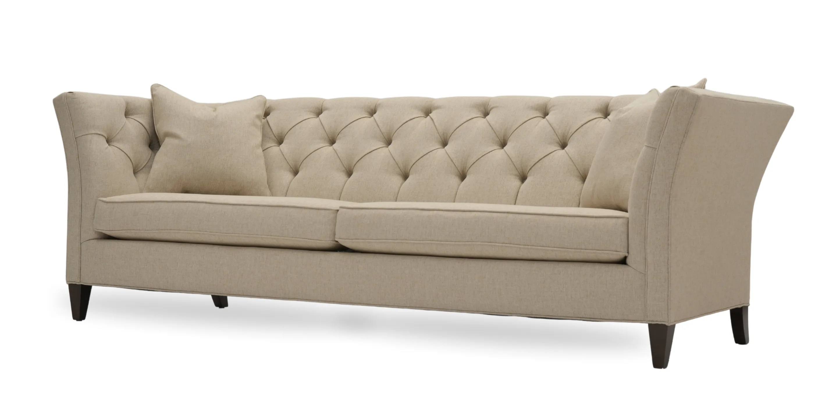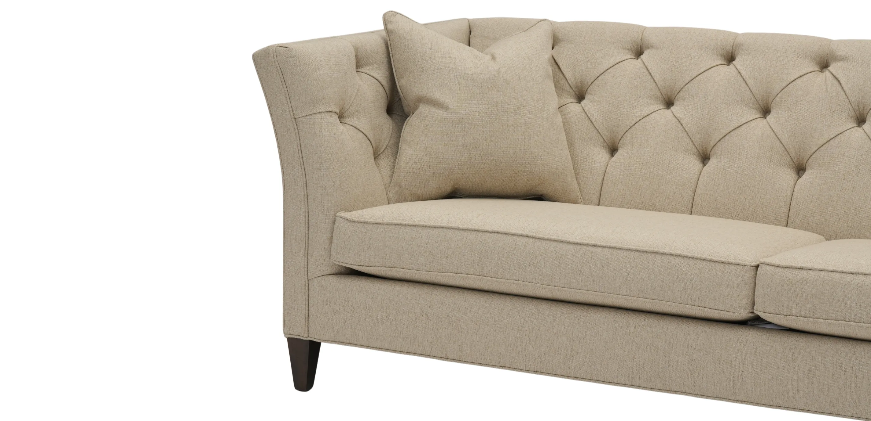 This sofa features deep seats, a high back and sides, and tapered legs. Stately curved and unfussy details. Shelton is all about relaxed glamour with classic diamond tufting and perfect curves.