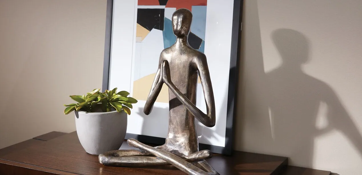 Bodhi means pure intelligence in Sanskrit; it’s the bliss of Nirvana, the state of enlightenment sought by all who practice Buddhism. Infinitely easier to attain is our Bodhi sculpture. It's a stylized sculpture in the lotus position, the traditional Buddhist meditation pose. The slender figure with long, exaggerated limbs is an example of expert sand-casting: the labor-intensive process of casting molten metal (aluminum, in this case) into an intricate mold formed in sand. Finished in antique bronze, this modern piece evokes a sense of serenity and calm.