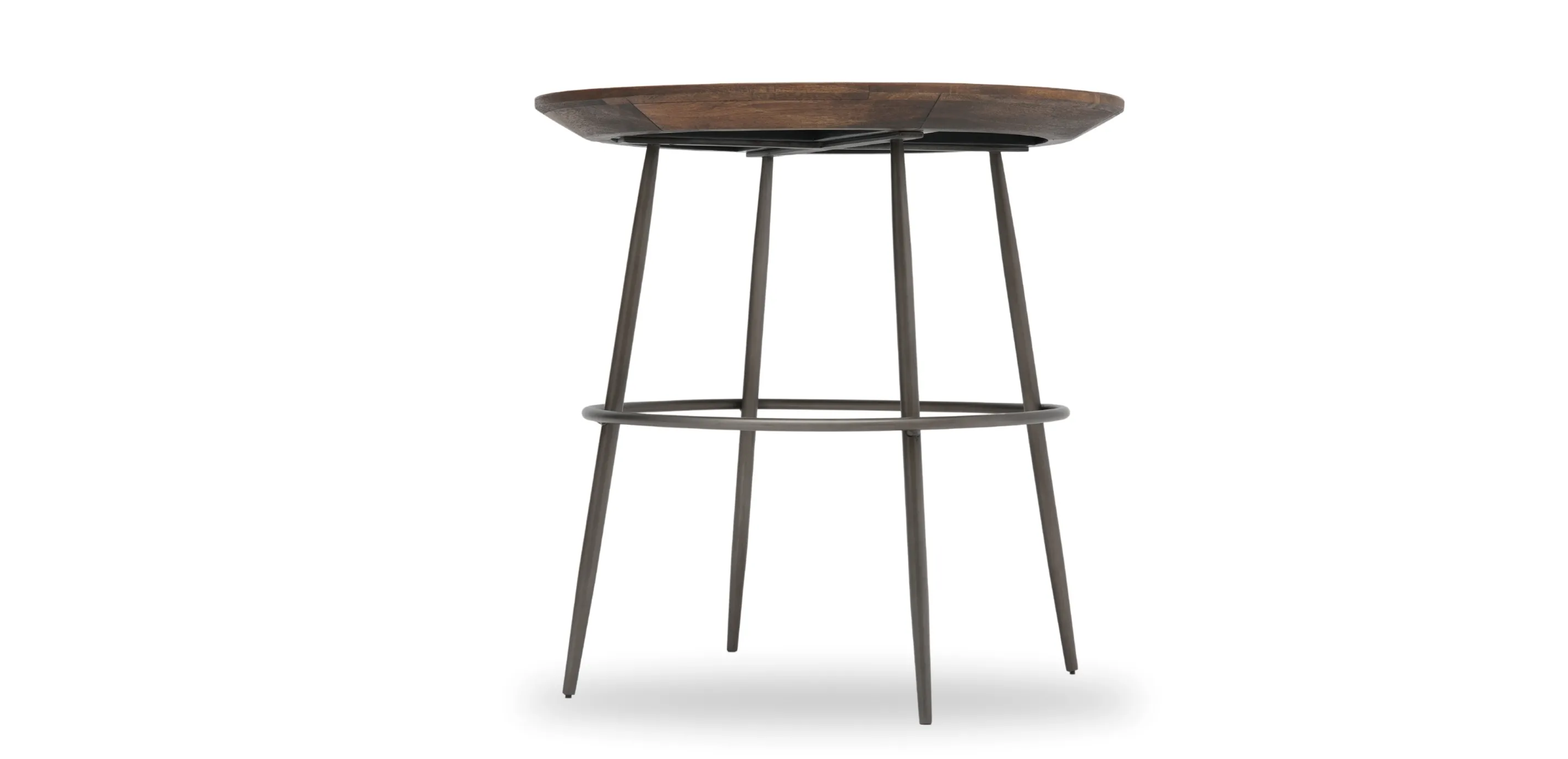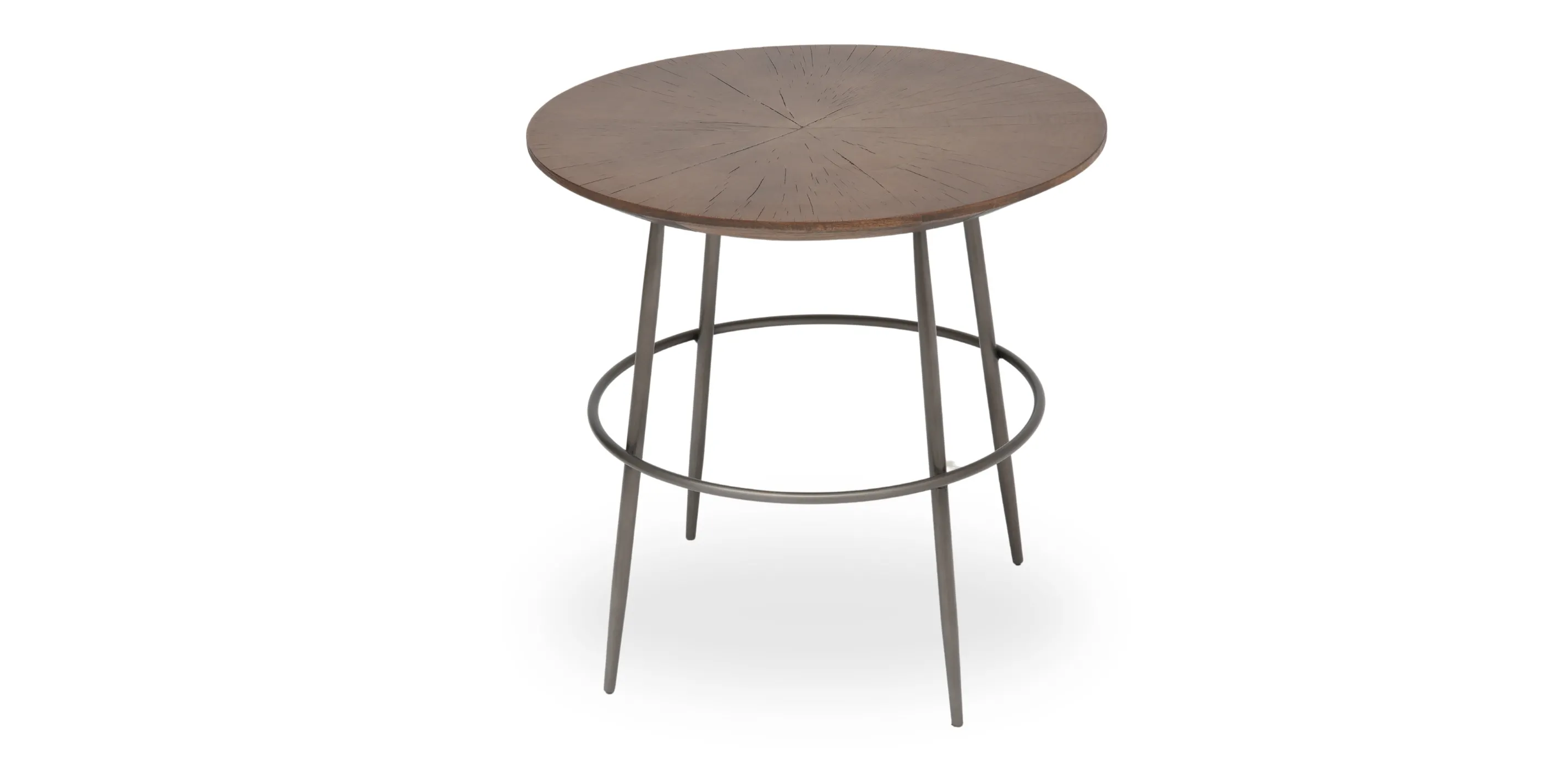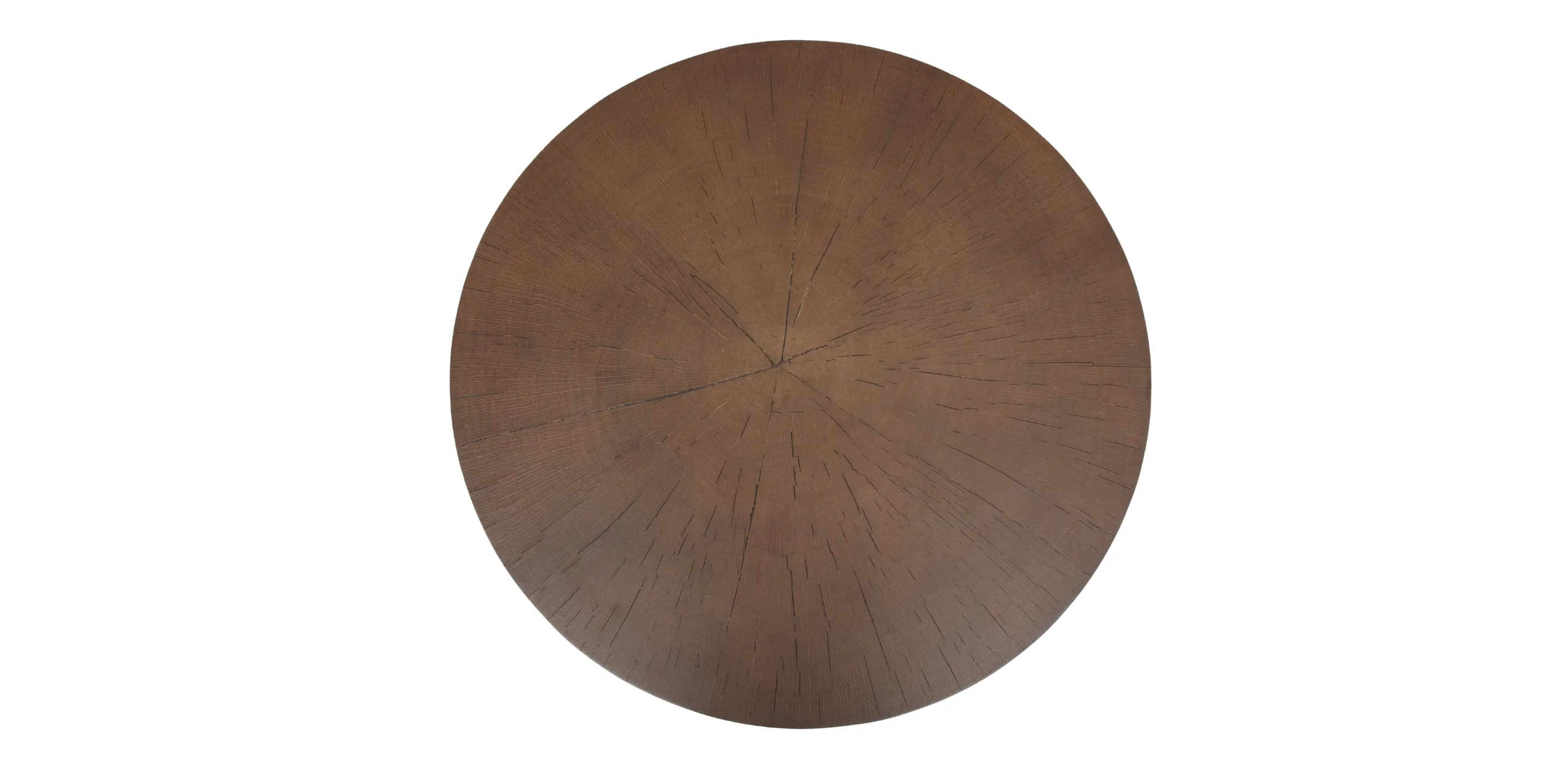 The look of cross-cut natural oak slab tops is featured on each one of a kind Talli accent table. The history of the tree is shown on each thick cut oak top, harvested from sustainable sources. Hand forged steel base with tapered legs gives this piece a modern, artisan point of view. • Cross-cut natural oak top and hand forged steel base • Tapered legs • Sustain-ably harvested wood from FSC (Forest Stewardship Council) forests