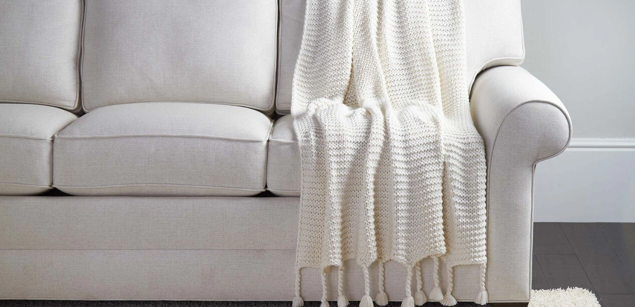 Soon to be a family keepsake. A cozy, textural knit pattern creates dimension and warmth. Elegant twisted tassels add a classic touch.