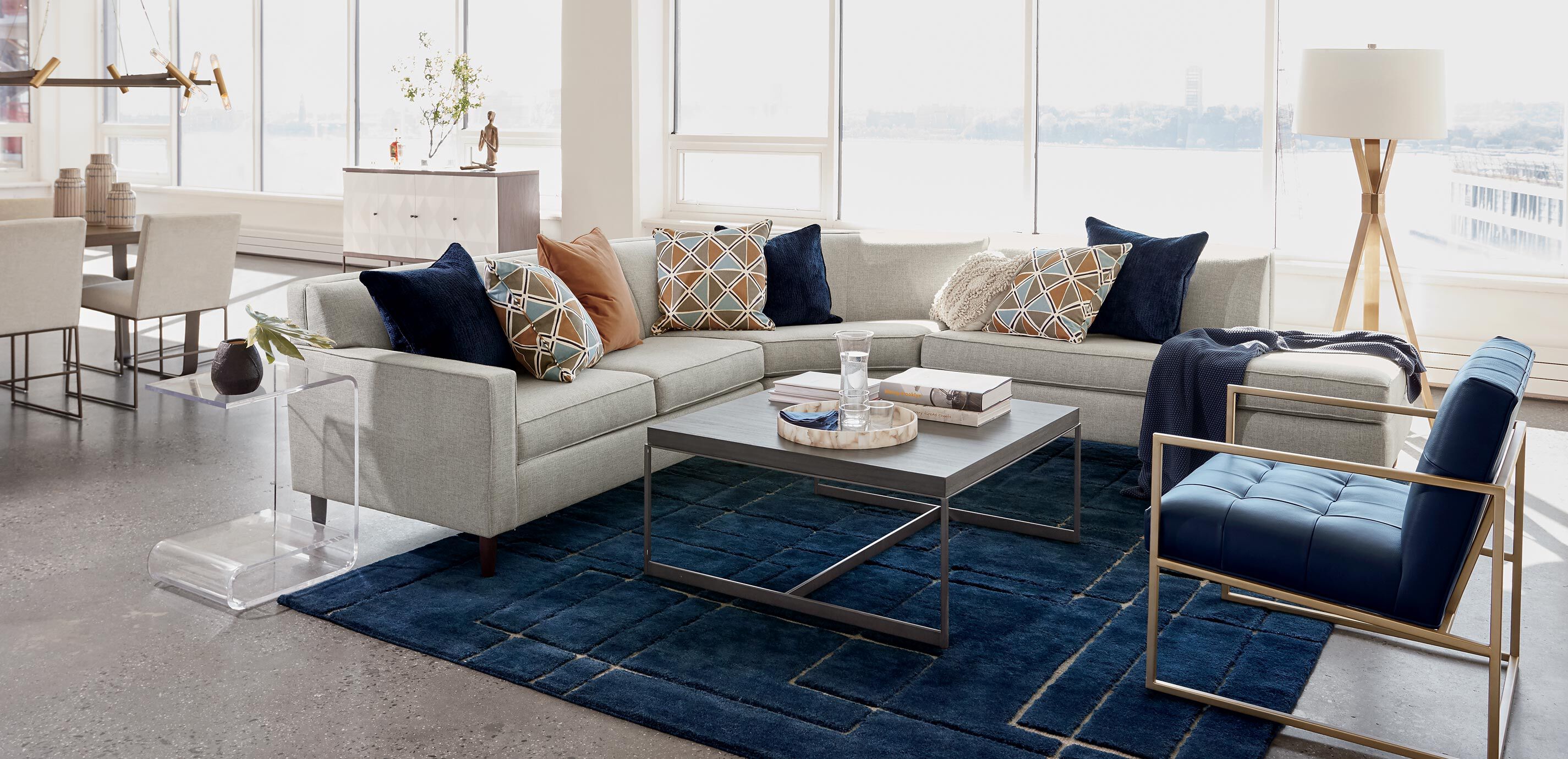 With its easel-inspired design, our Tomas brass floor lamps (also available as a brushed nickel floor lamp) are a modern works of art. Tomas is more than a lamp; it's a sculptural installation with presence and scale to spare. Its floor lamp brass or brushed nickel finish adds a muted, sophisticated shimmer to any space. Use these floor lamps to shine a modern, elegant light in any space. Made of iron Brushed nickel or brushed brass finish Brass version comes with ivory cotton, hardback, rolled-edge shade. Nickel version comes with soft white cotton, hardback, rolled-edge shade 23-watt LED bulb; three-way switch Cord extends from center of lamp base UL Listed Some assembly is required
