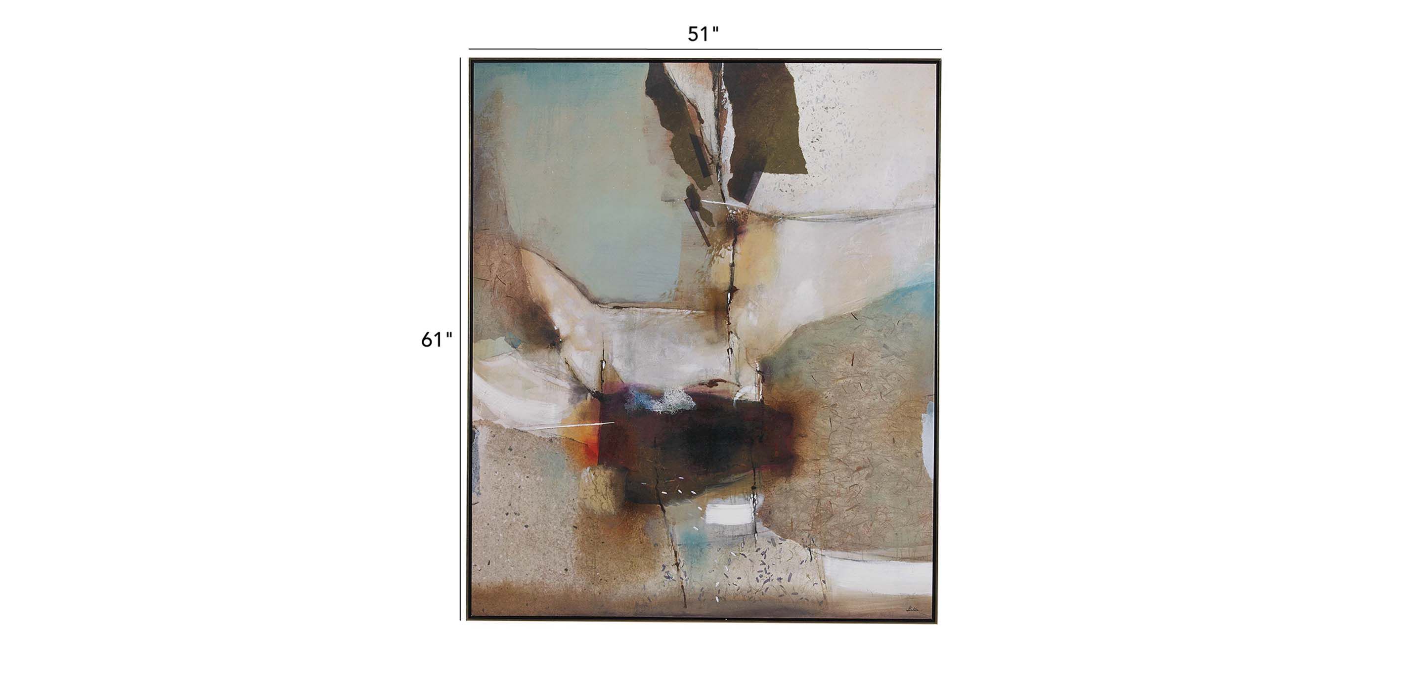 A soothing palette and freeform artistic style are hallmarks of works by the artist Shelton. This modern embellished giclée on canvas is an Ethan Allen exclusive. The deep, narrow floater frame sets the image away from the wall, adding to the overall depth and dramatic composition. Embellished giclee on canvas Solid wood float style frame Silver finish with black inner edge Includes everything needed for simple, safe, secure, level, no-wire hanging Framed by hand by master craftsmen specializing in framing techniques