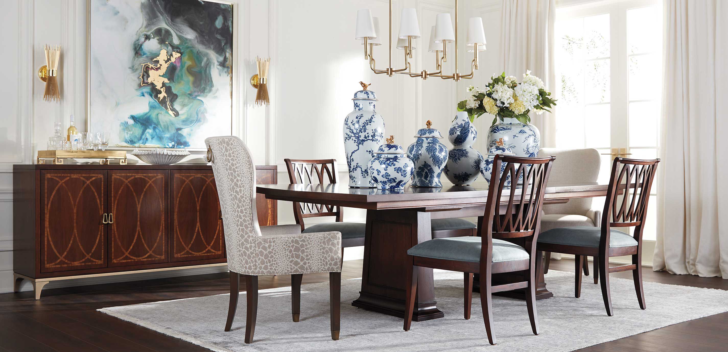 The sophisticated Turnbull linear chandelier is ready to shed light on your kitchen, dining room, or anywhere else. This linear chandelier's subtle details lend to a curated look: The S curve and knurling at the bottom of each arm draw from industrial design to add a little extra fashion. Classic shaded linear chandelier made modern with knurling detail; adds an industrial edge to any space Crafted from steel Available in either polished antique brass or polished nickel Shades are a tapered pure white rolled-edge hardback Canopy detail: 28" l x 5" w rectangle, antiqued polished brass or polished nickel Uses eight 3.3-watt LED candelabra bulbs Ships with two 18" rods, four 12" rods, four 6" rods and 13' of wire Hardwire only; professional installation recommended Click to view the Turnbull lighting collection.