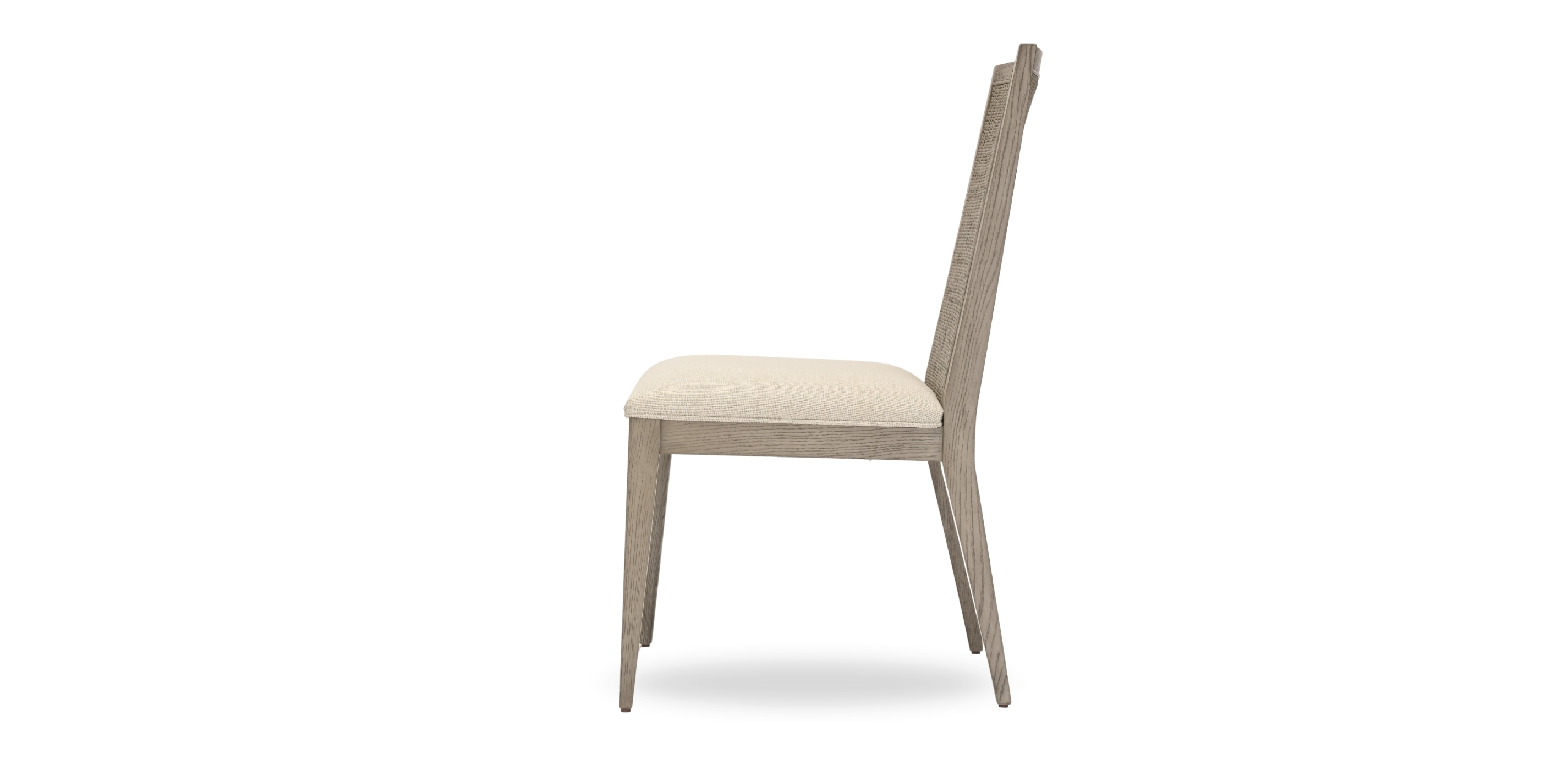 Usher in a new era of casual dining perfection. This clean, contemporary oak-frame armchair has a finish that our artisans wire-brush by hand to bring out the wood grain. A pair of welcoming arms surround a cozy cushioned seat, inviting you to linger over dinner (and definitely have dessert!). The chair's woven back, crafted from sturdy rattan, adds texture and a healthy helping of nature-inspired appeal. An oak-frame armchair for casual dining, with sleek lines and a striking woven back Gorgeous oak frame has a wire-brushed finish to bring out its wood grain Woven back crafted from sturdy rattan for a look that's both durable and beautiful Cushioned seat can be upholstered in a range of performance fabrics to resist spills and stains