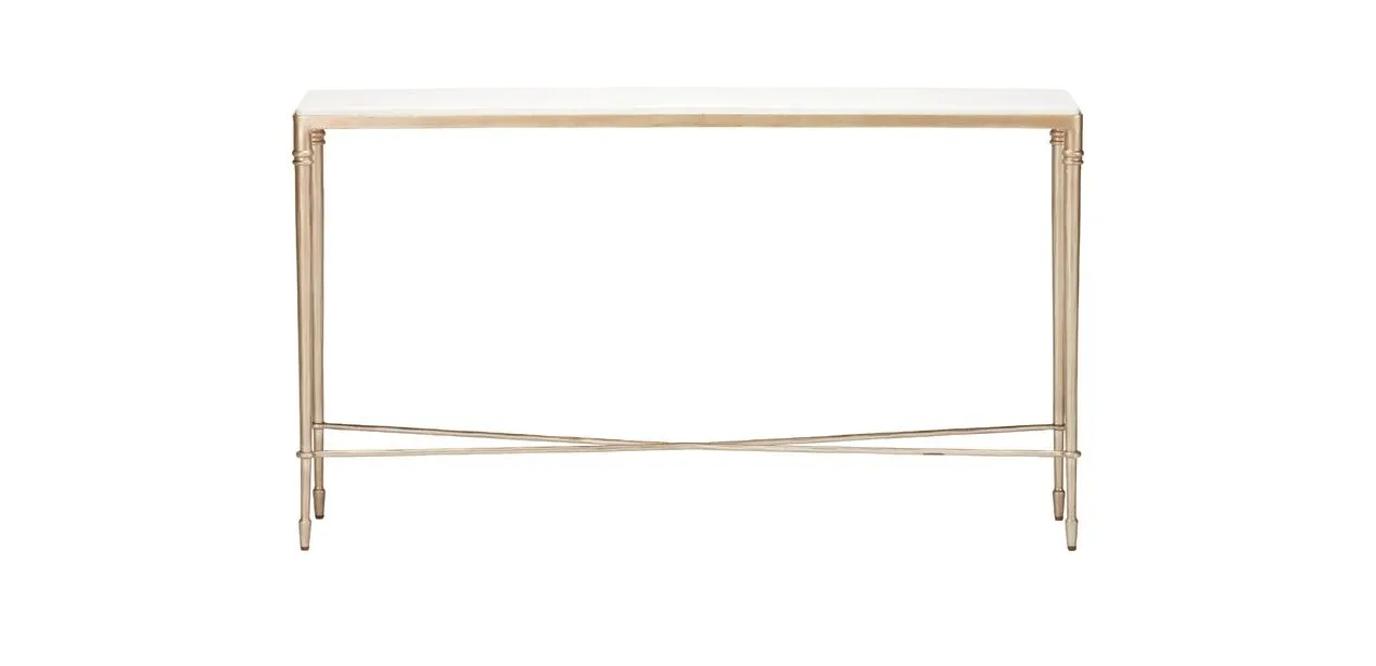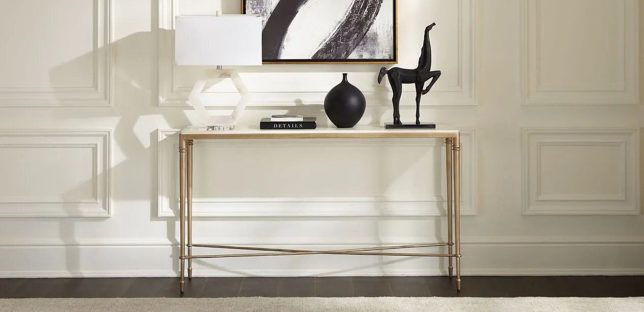 "The perfect mix of modern and formal moods, this console table makes a stunning statement in entryways, hallways, or behind the sofa. Choose your size; each is made with a hand-cast metal base and a stunning agate stone top, which artisans polish to highlight its unique hexagonal pattern.
