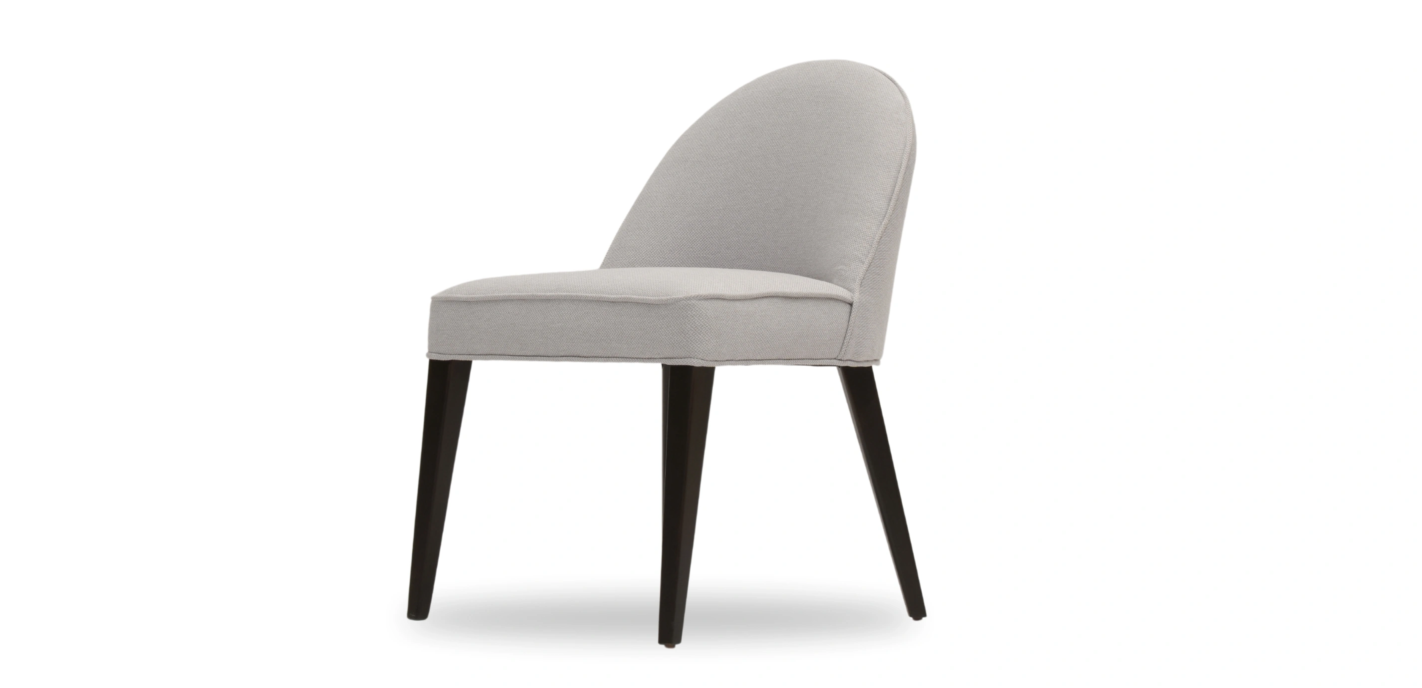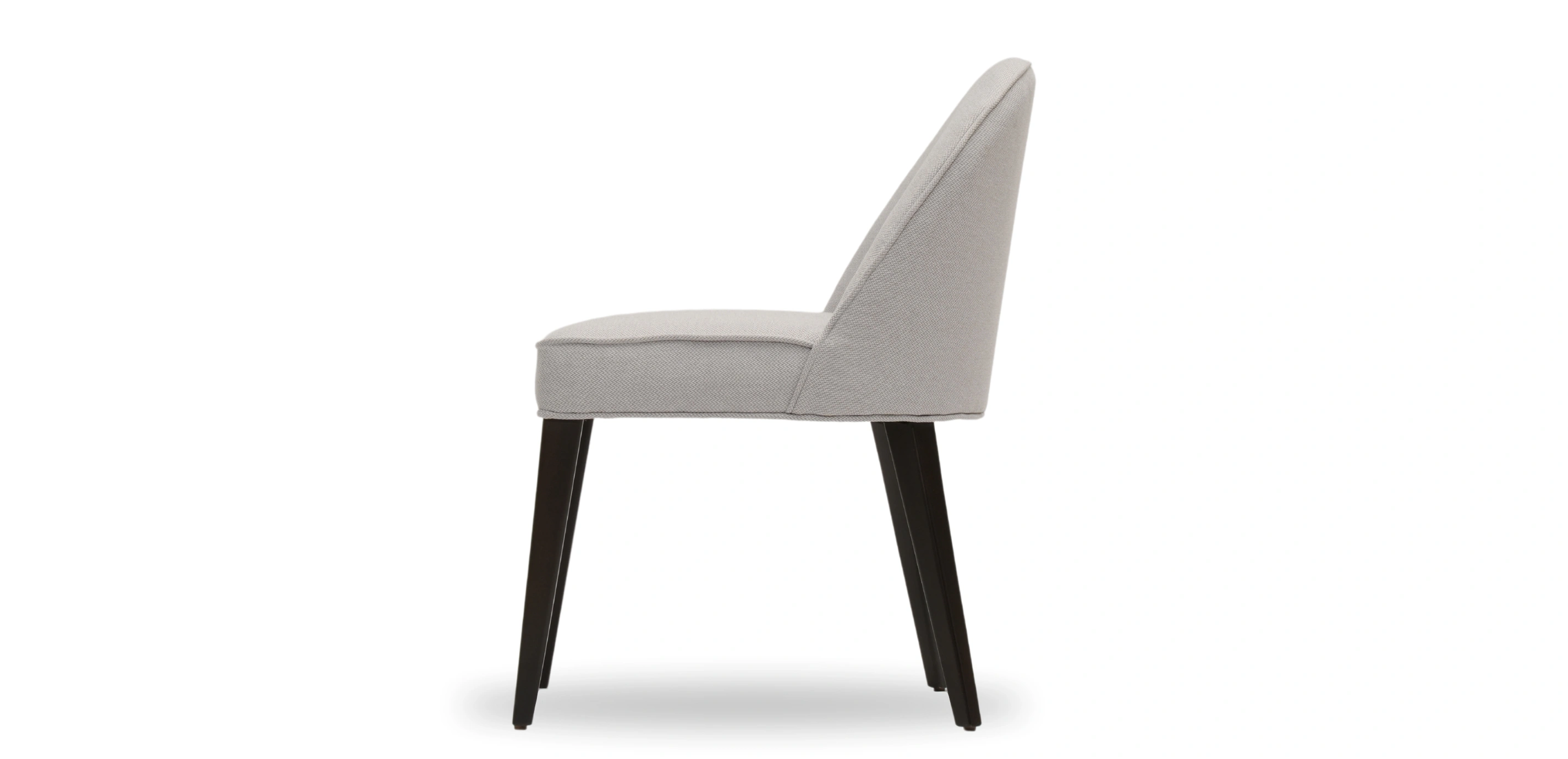"It's organic in shape, petite in scale, and big on functionality; it's a midcentury-inspired dining chair but easily styles for today. The Vera midcentury-modern side chair, with contours and curves that come together atop tall tapered legs, is a perfect statement seat. Get your Vera dining side chairs upholstered in your favorite fabric. Also available in leather and Quick Ship.