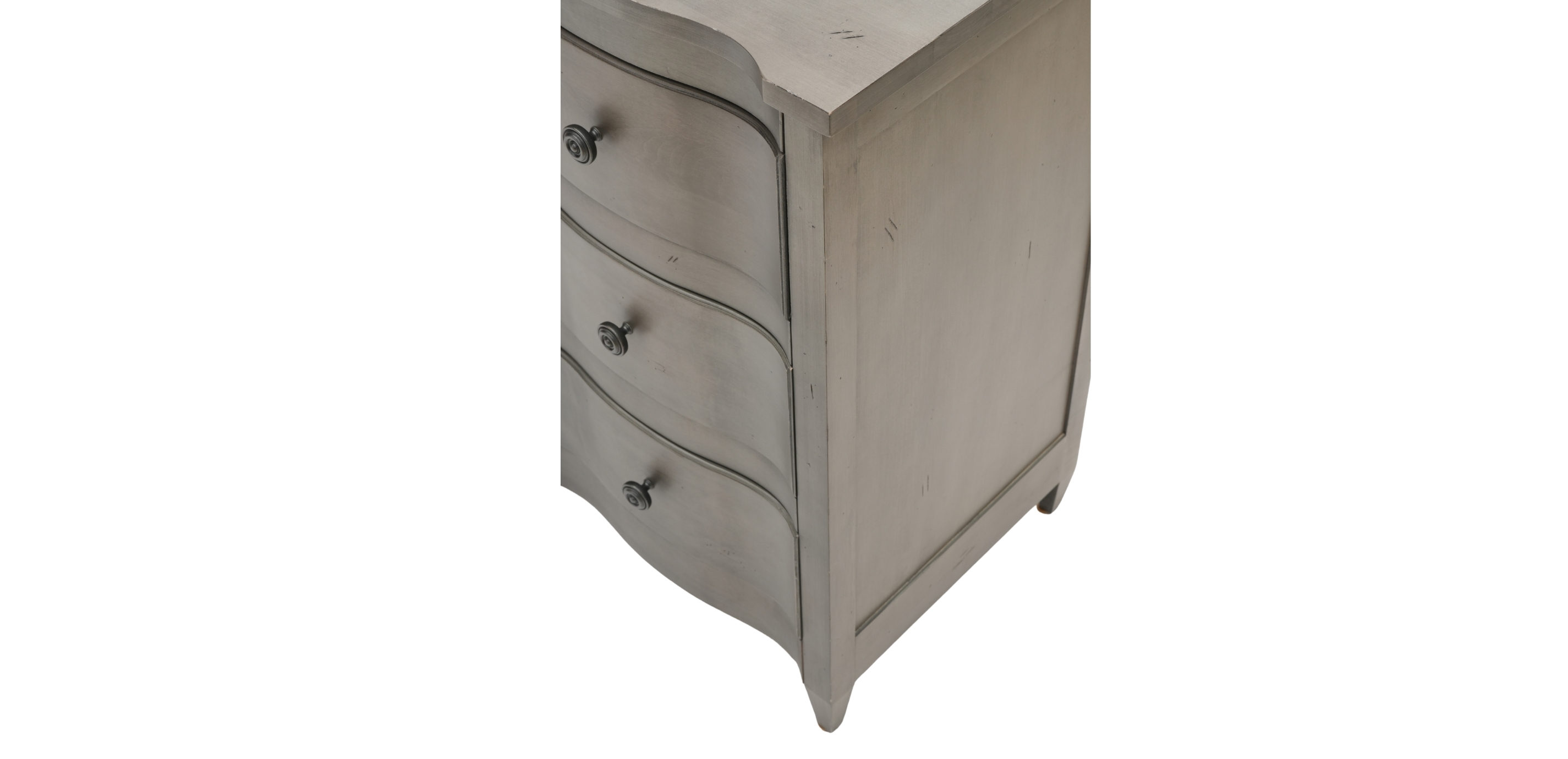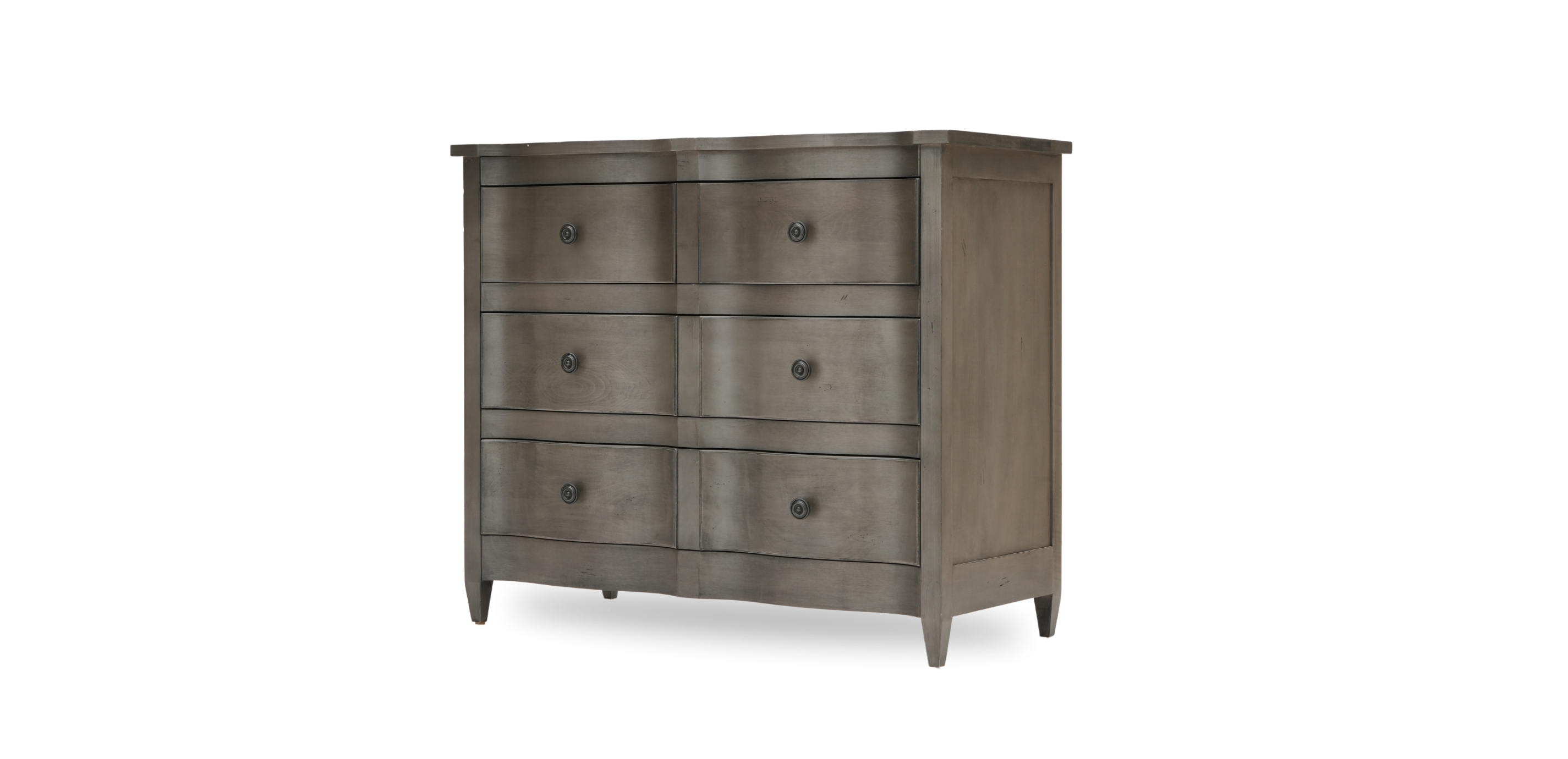 A European beauty, twice removed: Wynn's curves and lines were inspired by eighteenth-century French Canadian styles, which were themselves interpretations of designs that had been popular previously in Paris. Crafted from maple or birch with a tight, uniform grain that lends itself to all finishes, including light stains and paints Three serpentine front storage drawers Antiqued bronze-finished hardware Tapered legs Additional finishes are available for order in Design Centers.